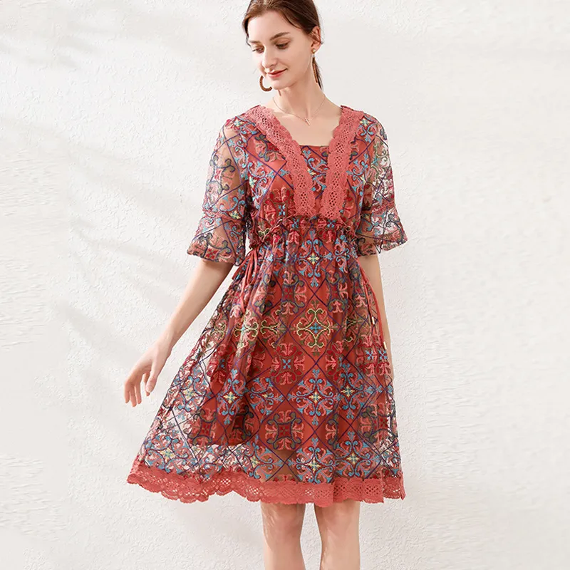 衣都精品- 2020夏季新款洋氣顯瘦刺繡連衣裙