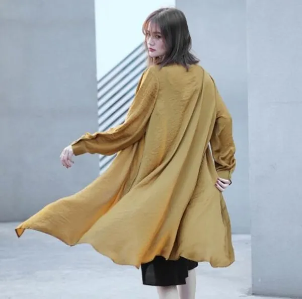 衣都精品-歐美H版型時尚簡約長袖長款開衫防曬衫連衣裙