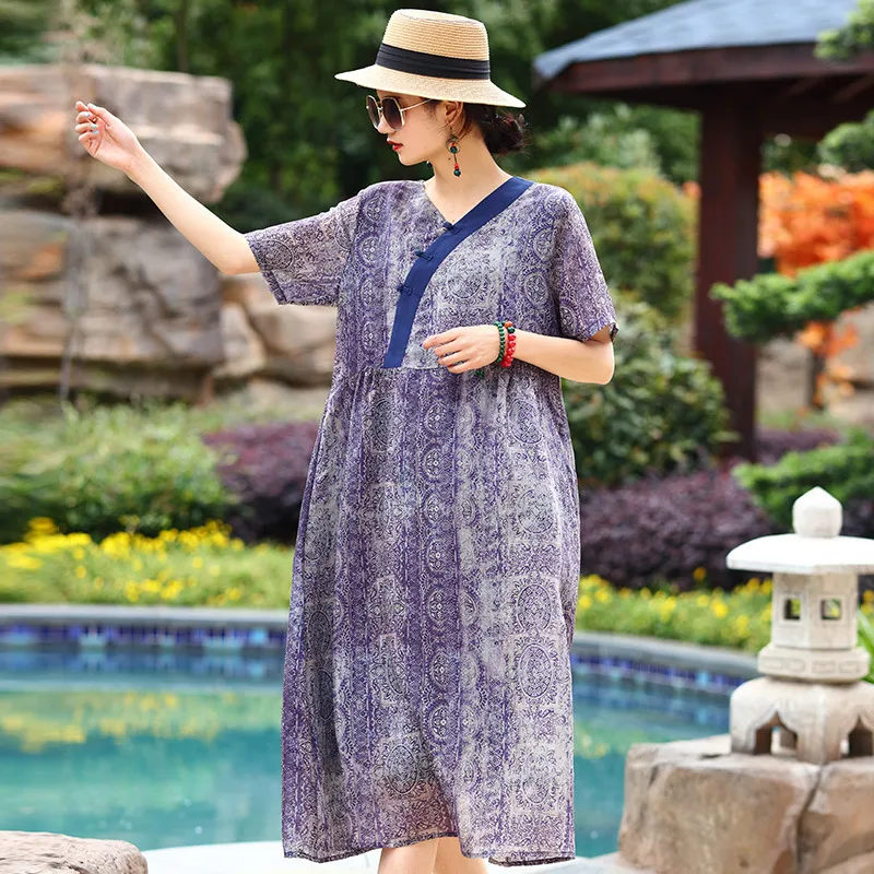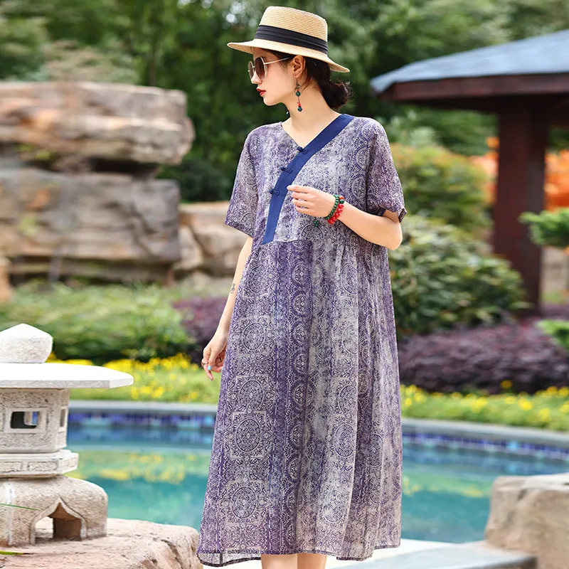 衣都精品- 2020夏季新款盤扣高腰顯瘦連衣裙