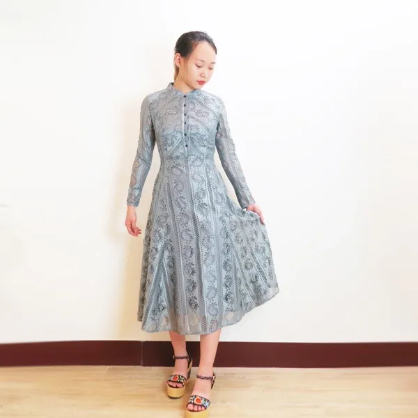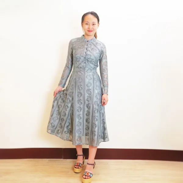 衣都-女春顯腰身蕾絲鏤空連衣裙