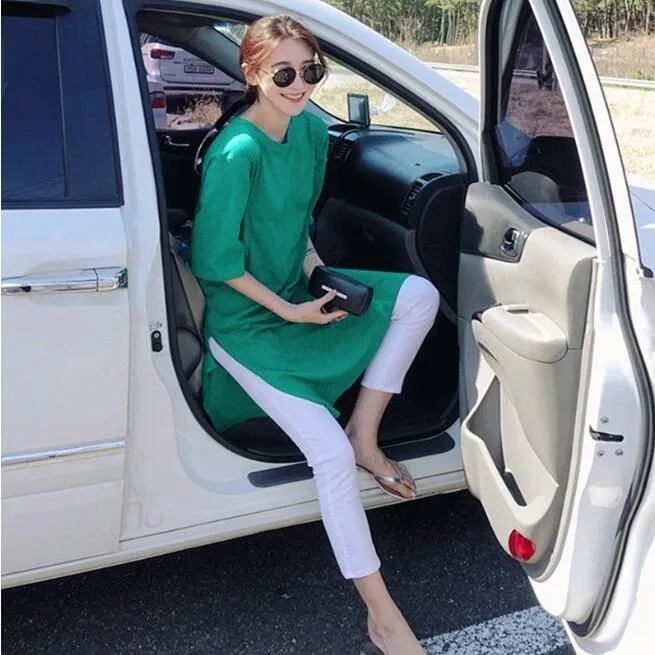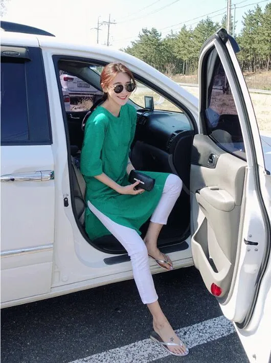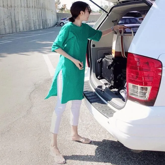 衣都精品-新款棉麻中長款韓版寬鬆大碼口袋亞麻連衣裙