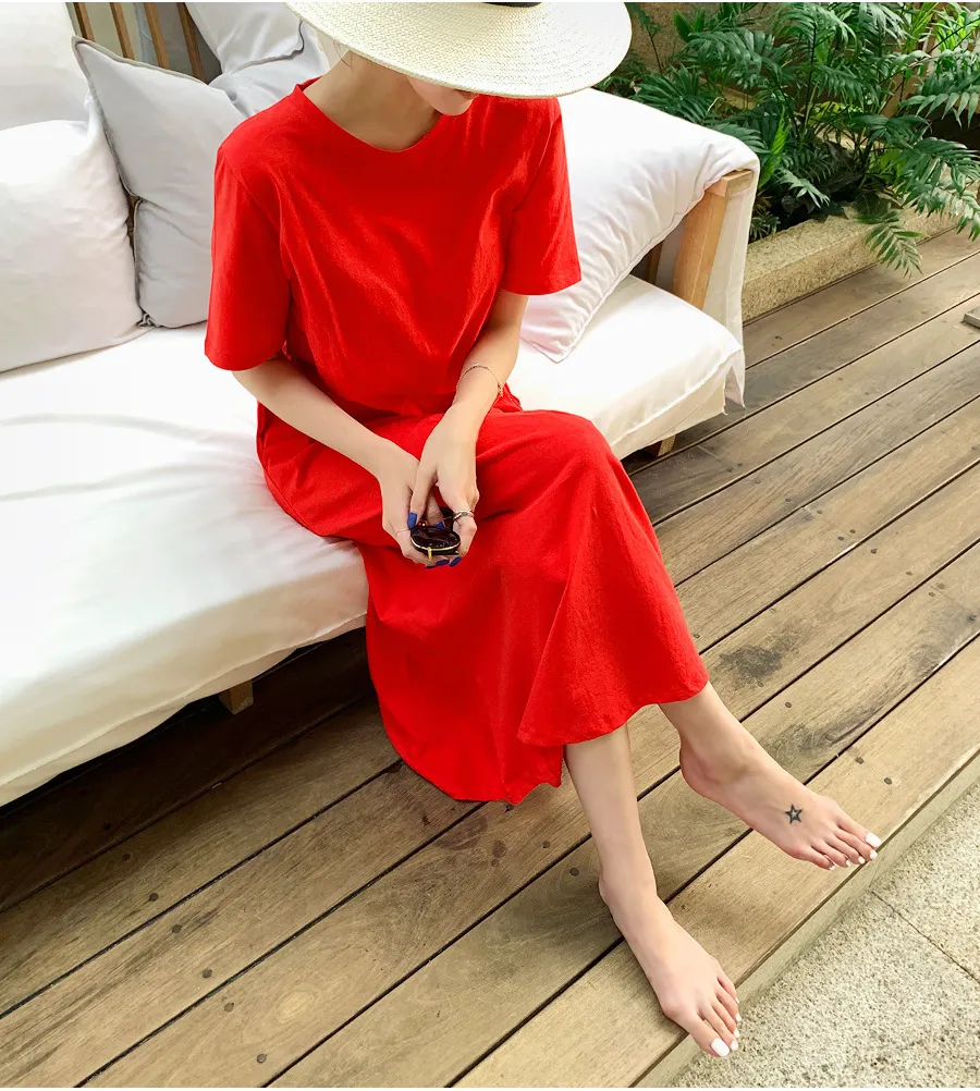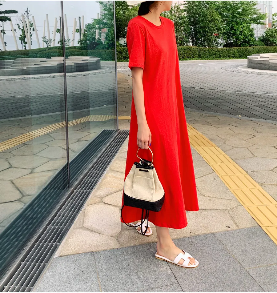 衣都精品- 2020夏季韓版寬鬆竹節棉連衣裙