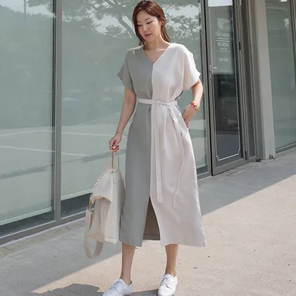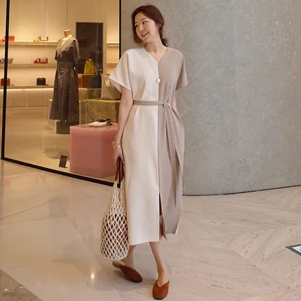 衣都精品- 2021春季新款韓版寬鬆顯瘦V領連衣裙