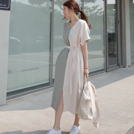 衣都精品- 2021春季新款短袖撞色拼接連衣裙