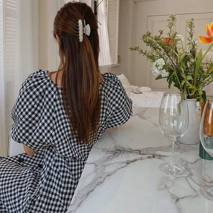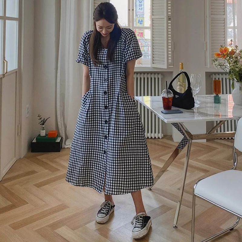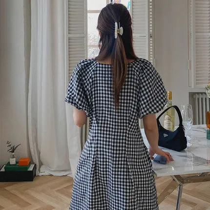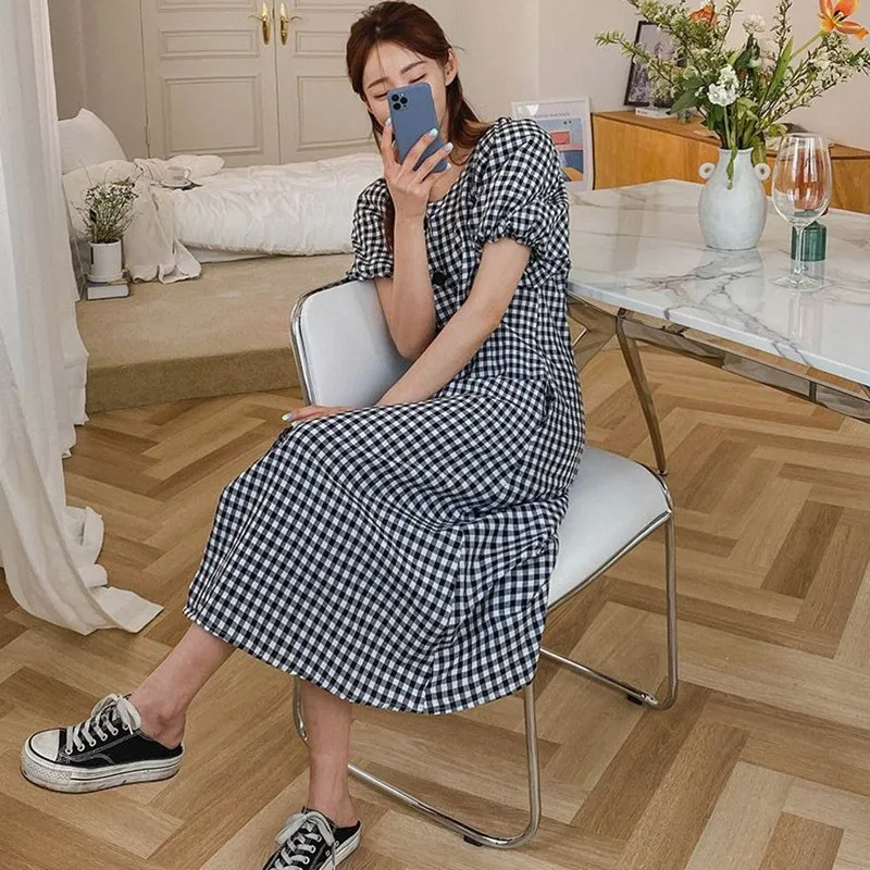 衣都精品- 2021春季新款韓版收腰顯瘦氣質格子連衣裙