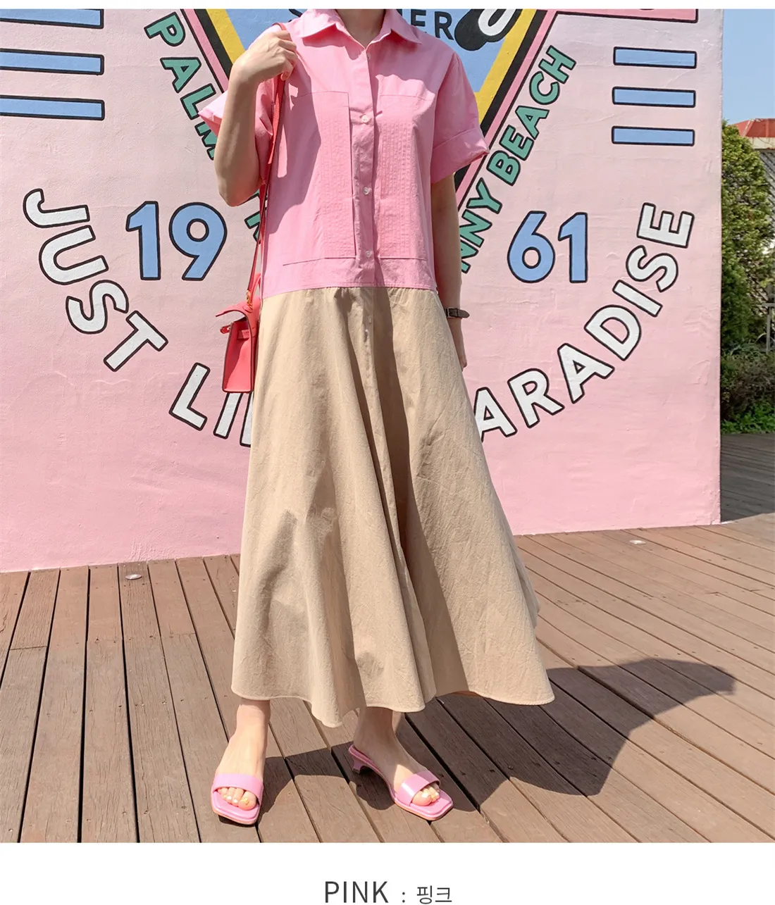 衣都精品- 2022春季新款韓版顯瘦短袖撞色拼接連衣裙