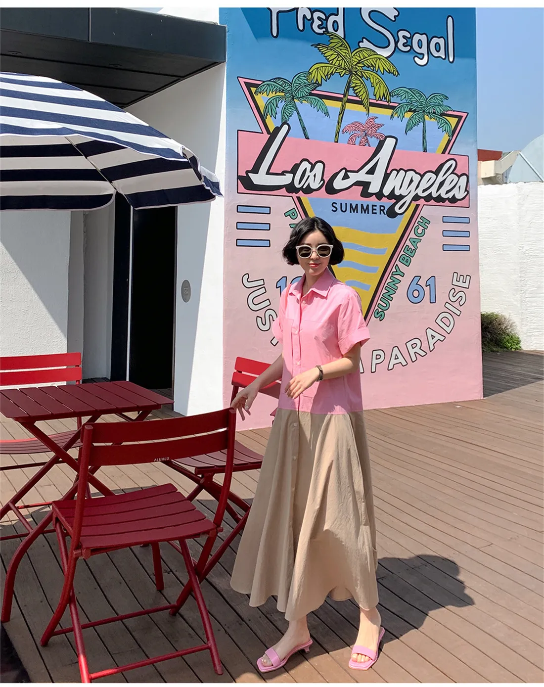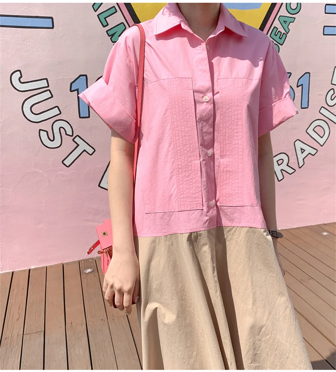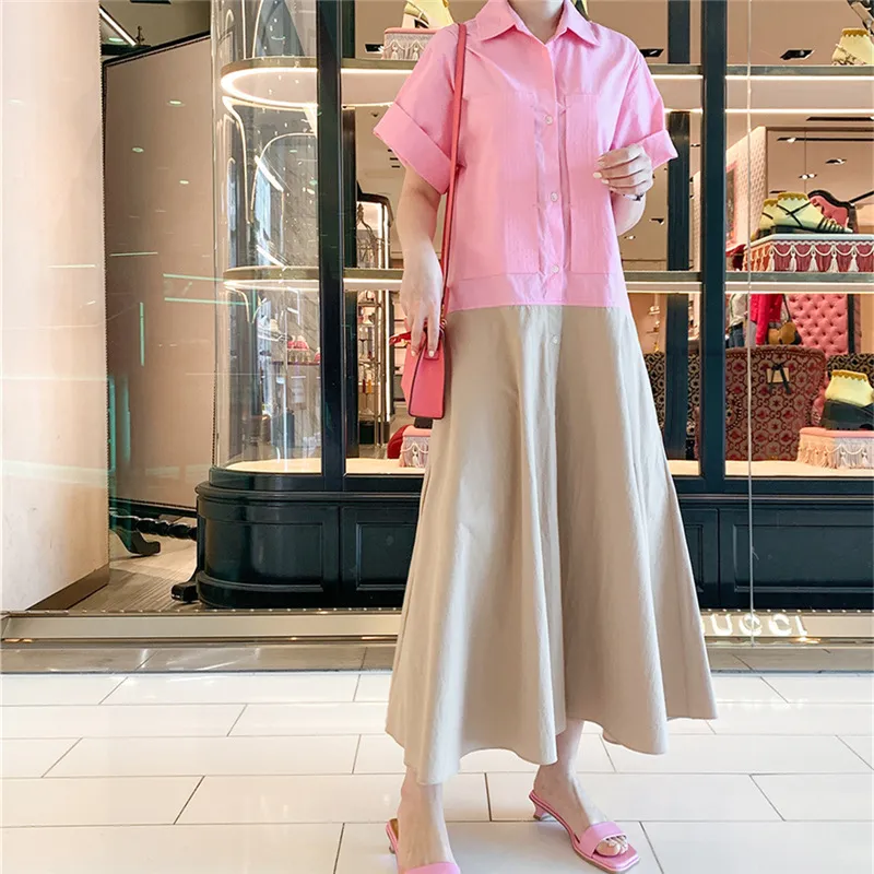 衣都精品- 2021夏季新款韓版寬鬆顯瘦短袖拼接連衣裙