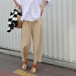 衣都精品- 2022春夏新款韓版休閒高腰九分闊腿褲