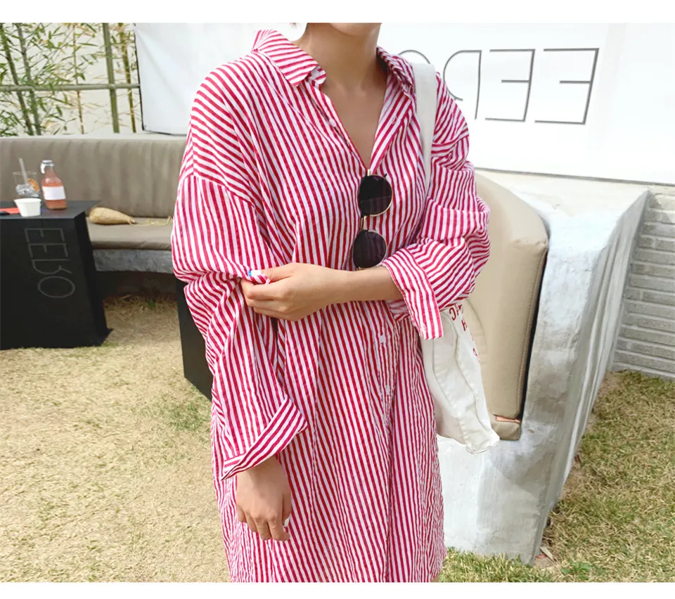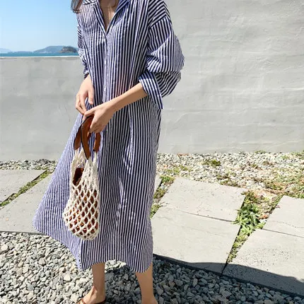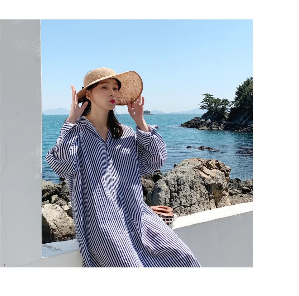 衣都精品- 2022春夏新款韓版寬鬆條紋大碼顯瘦連衣裙