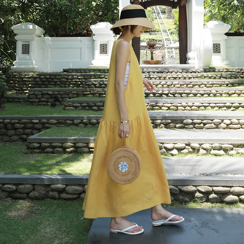 衣都精品- 2022春夏新款韓版長款無袖娃娃款連衣裙
