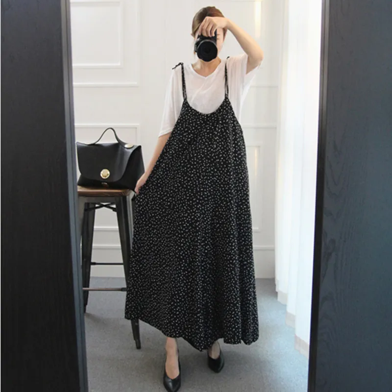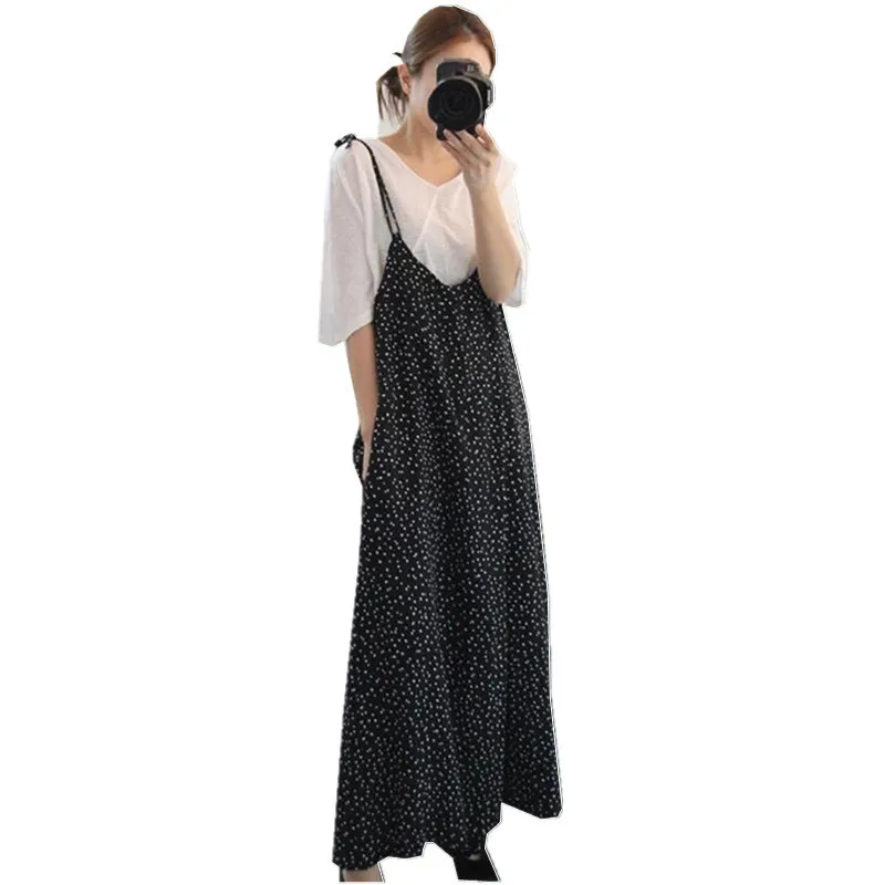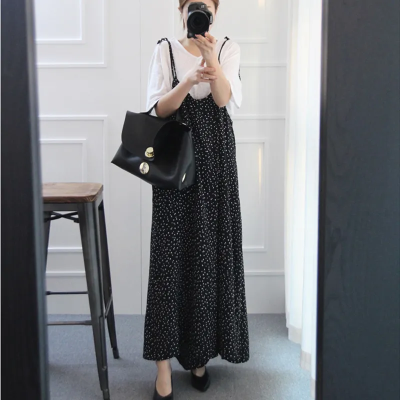 衣都精品- 2022春夏新款韓版大碼波點吊帶雪紡闊腿連衣褲