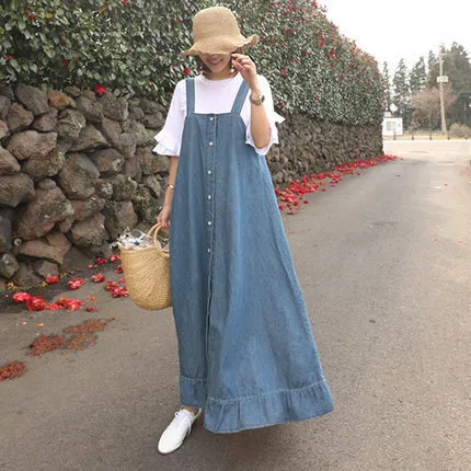 衣都精品- 2022春夏新款韓版休閒牛仔吊帶連衣裙