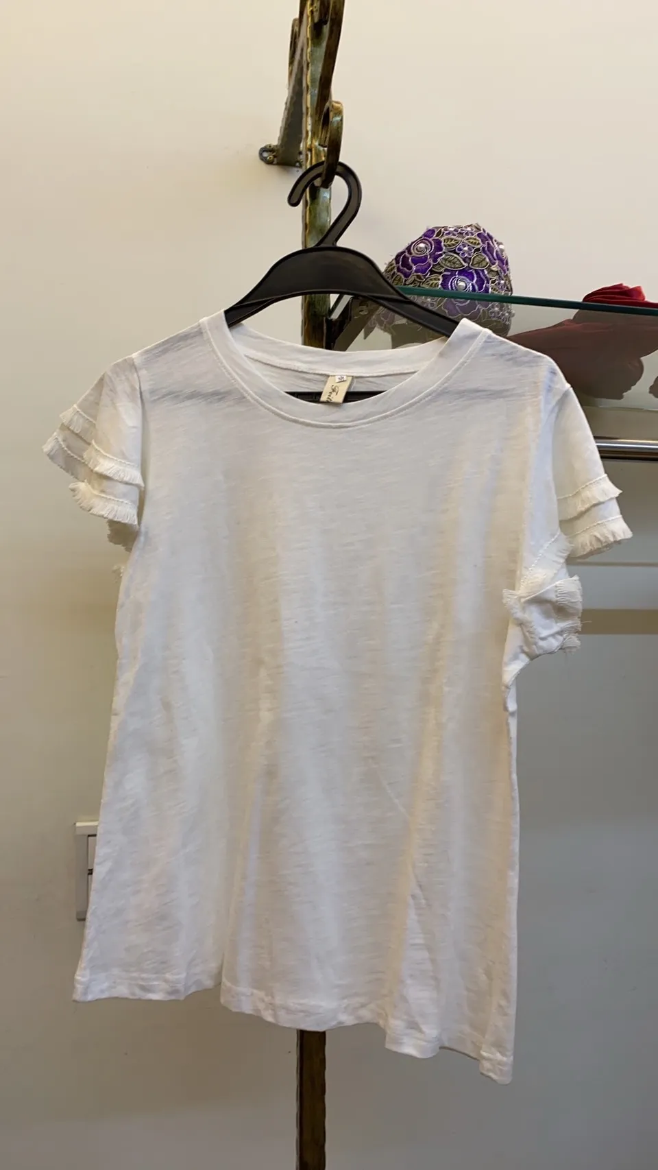 衣都精品- 2022春夏新款韓版寬鬆圓領五分荷葉袖上衣