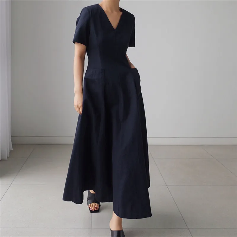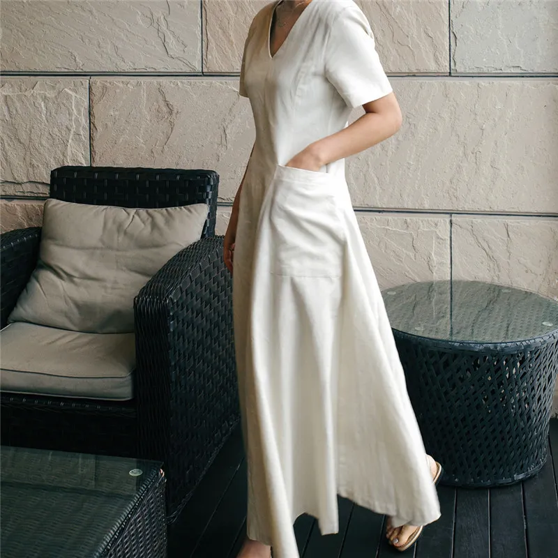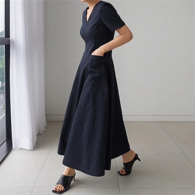 衣都精品- 2022春夏新款時尚V領顯瘦寬鬆短袖連衣裙