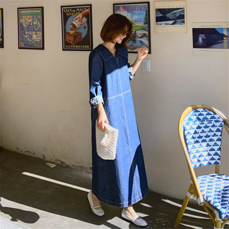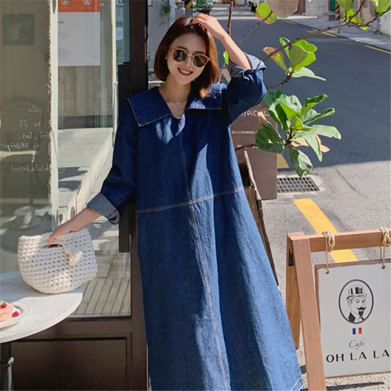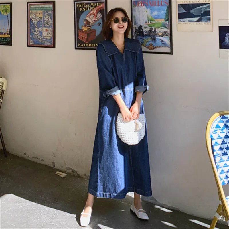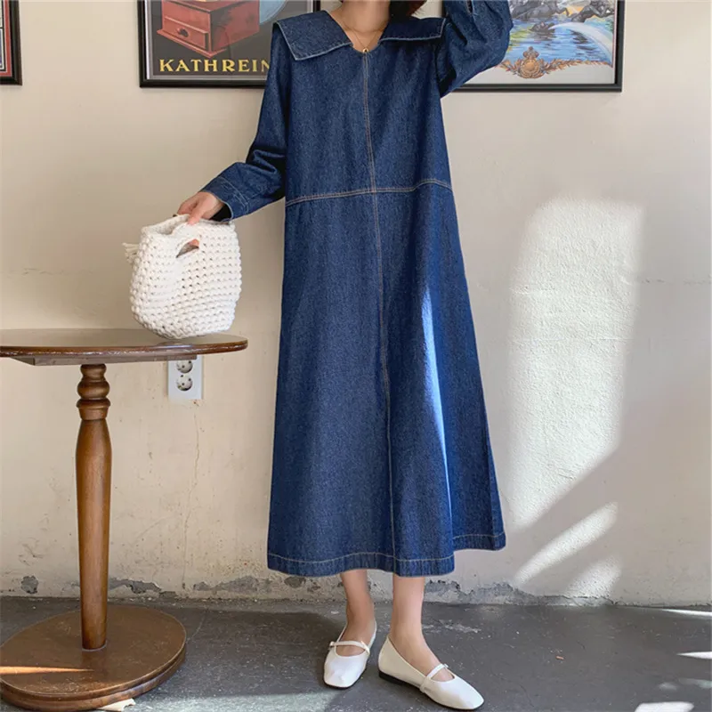 衣都精品- 2022春夏新款韓版寬鬆顯瘦長袖牛仔連衣裙