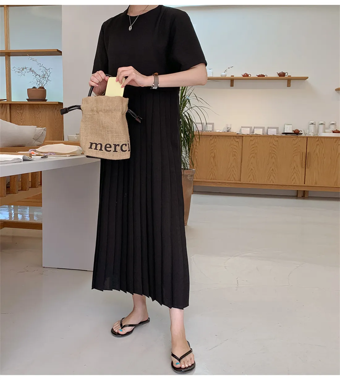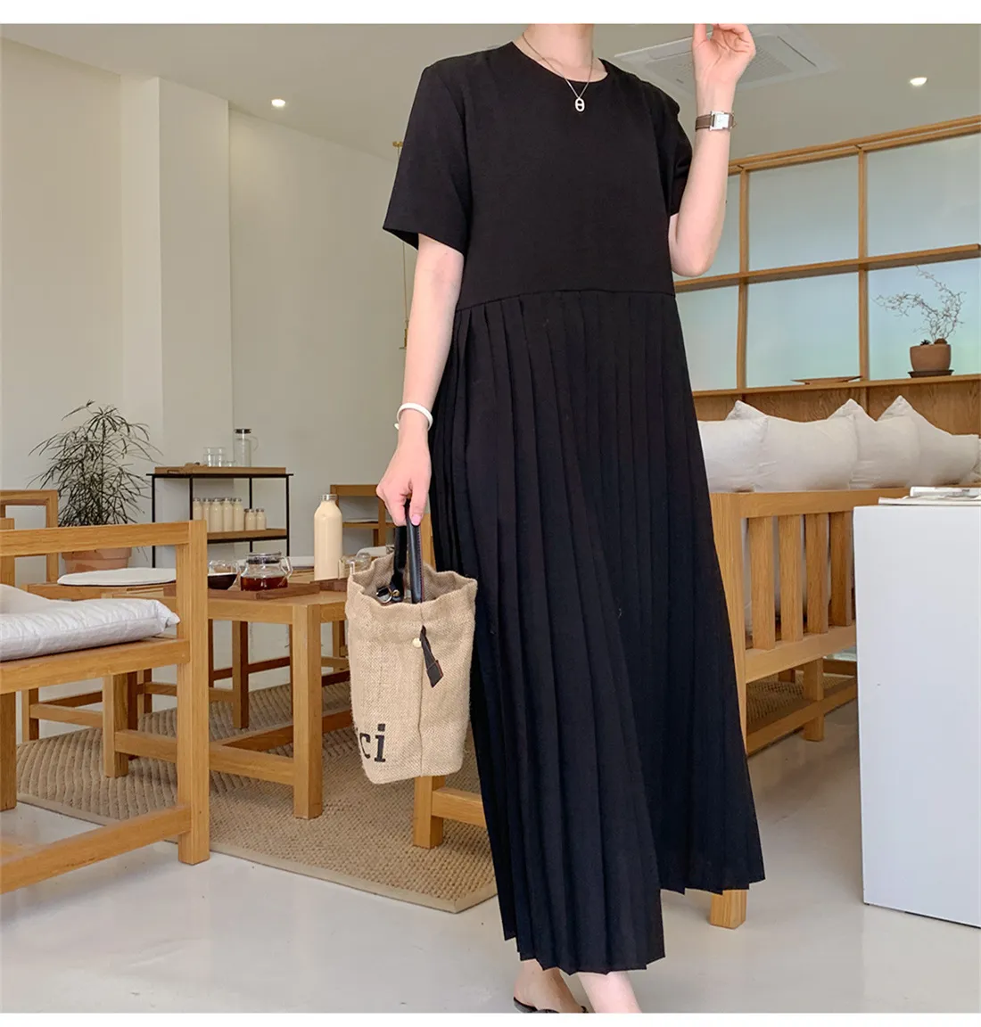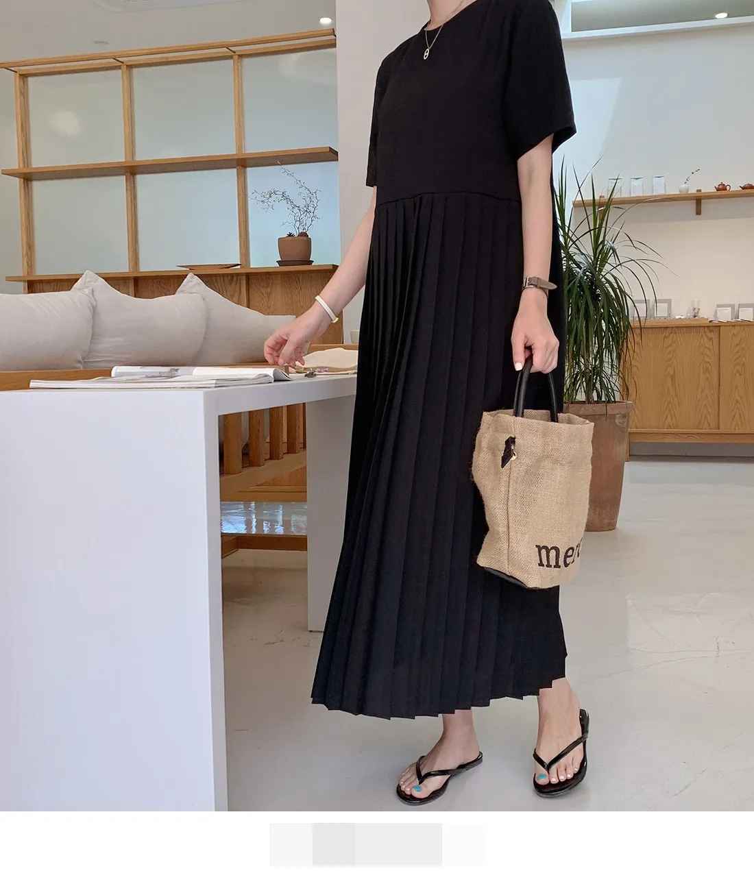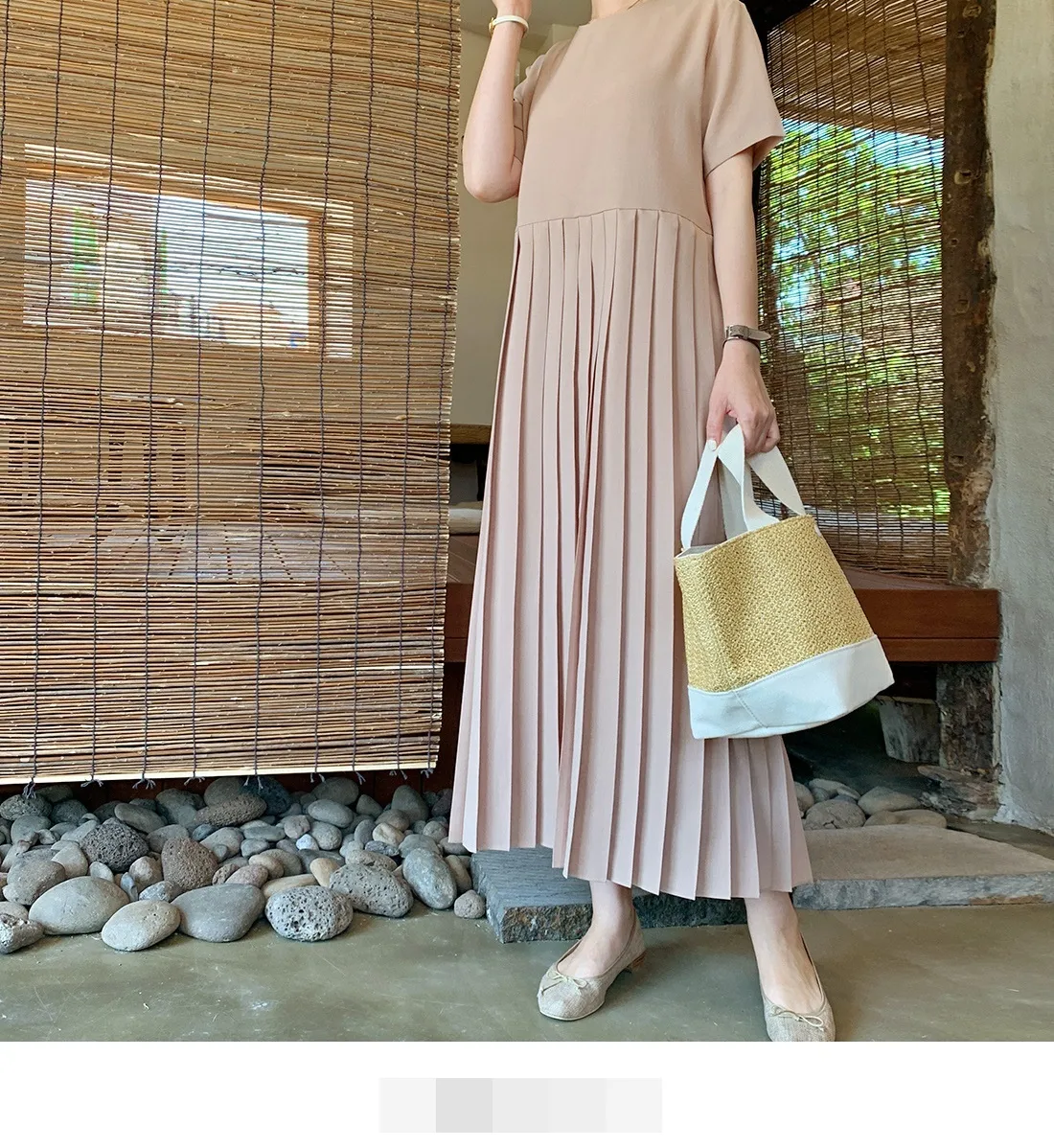 衣都精品- 2023新款韓版寬鬆顯瘦短袖百褶連衣裙