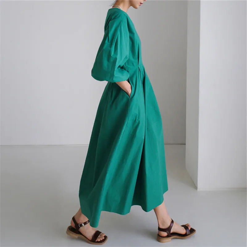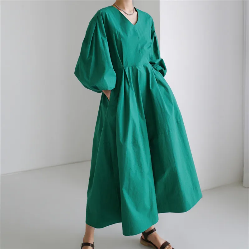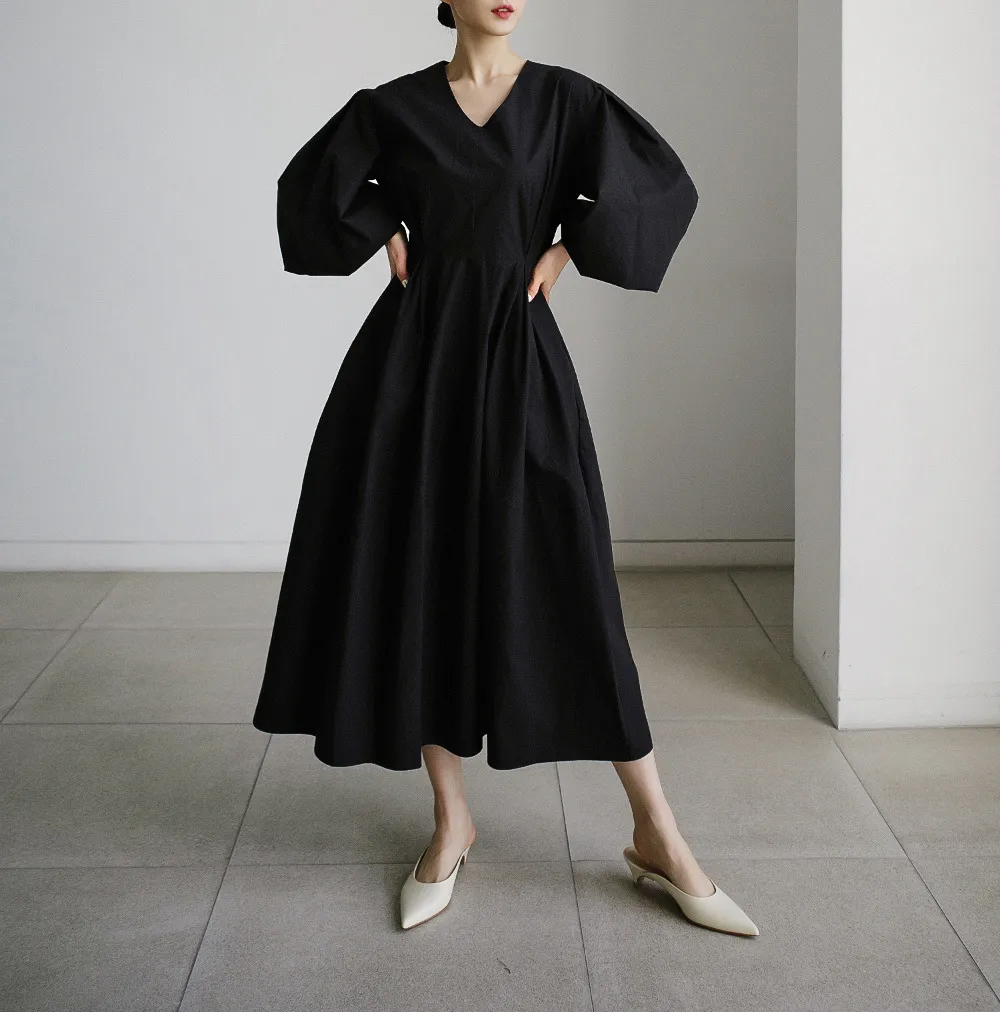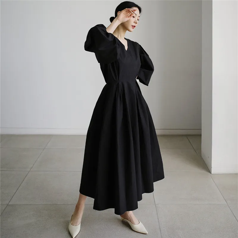 衣都精品- 2023新款韓版高腰燈籠袖娃娃款連衣裙
