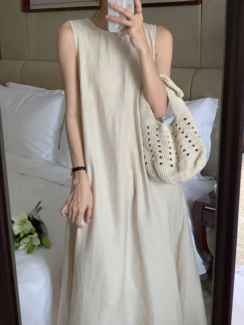 衣都精品- 2023新款韓版長款無袖背心連衣裙