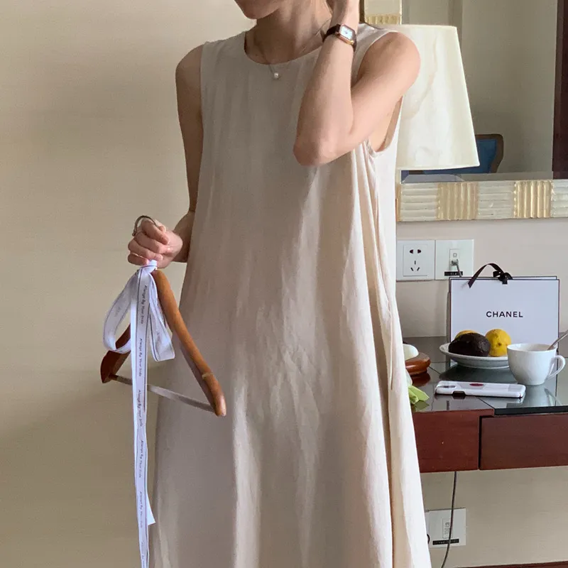 衣都精品- 2023新款韓國無袖背心寬鬆顯瘦過膝連衣裙