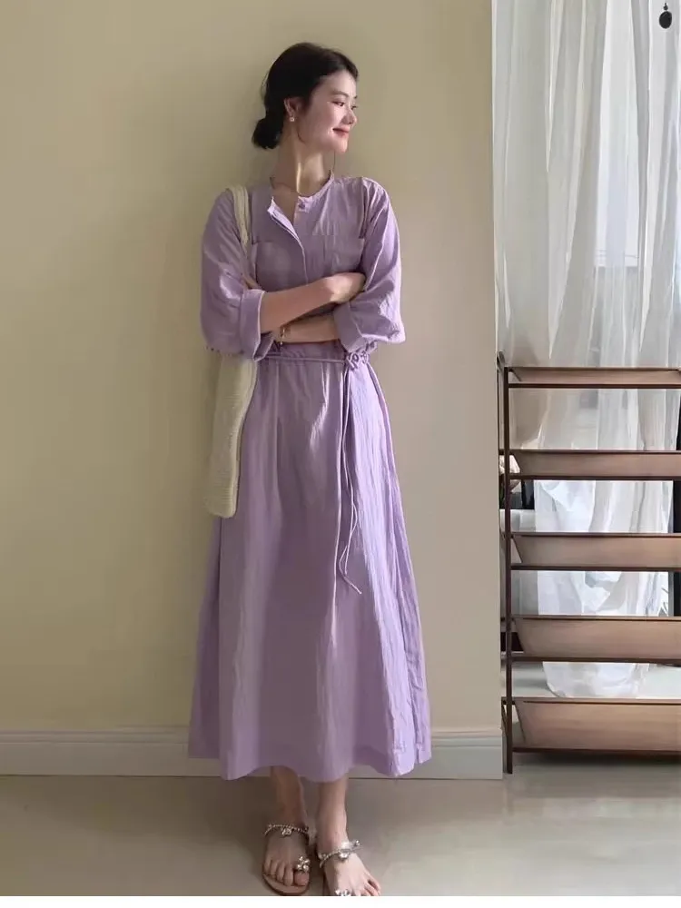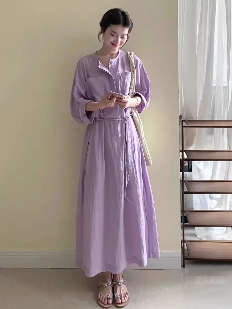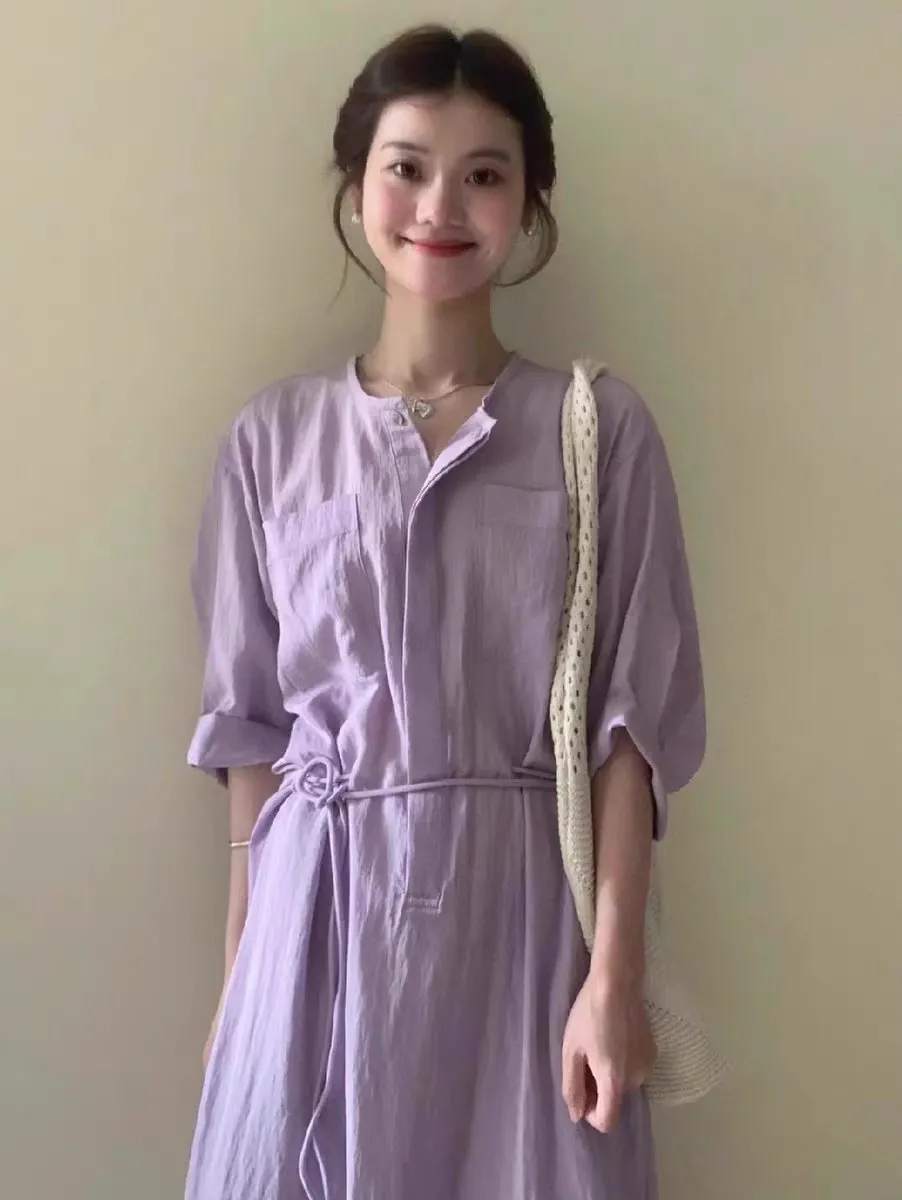 衣都精品- 新款韓版寬鬆大碼中長款休閒繫帶連衣裙