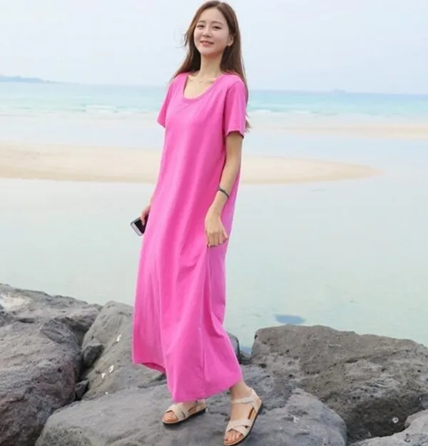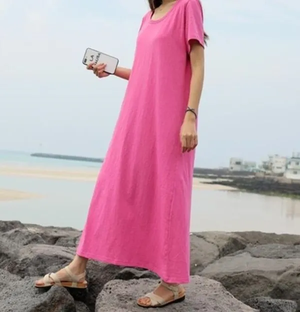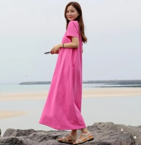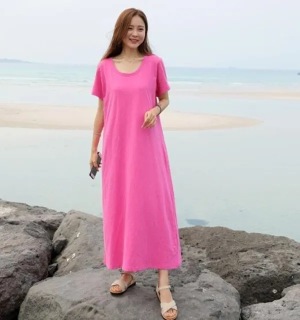 衣都精品-韓風過膝長款寬鬆大碼棉質連衣裙