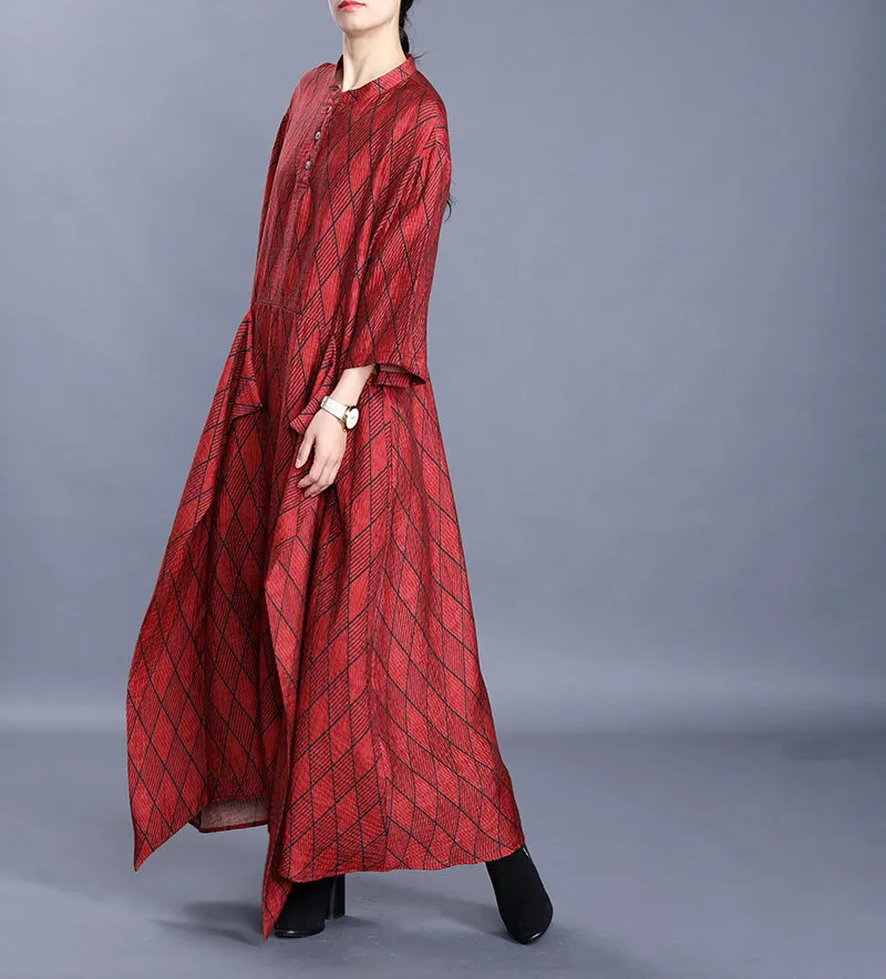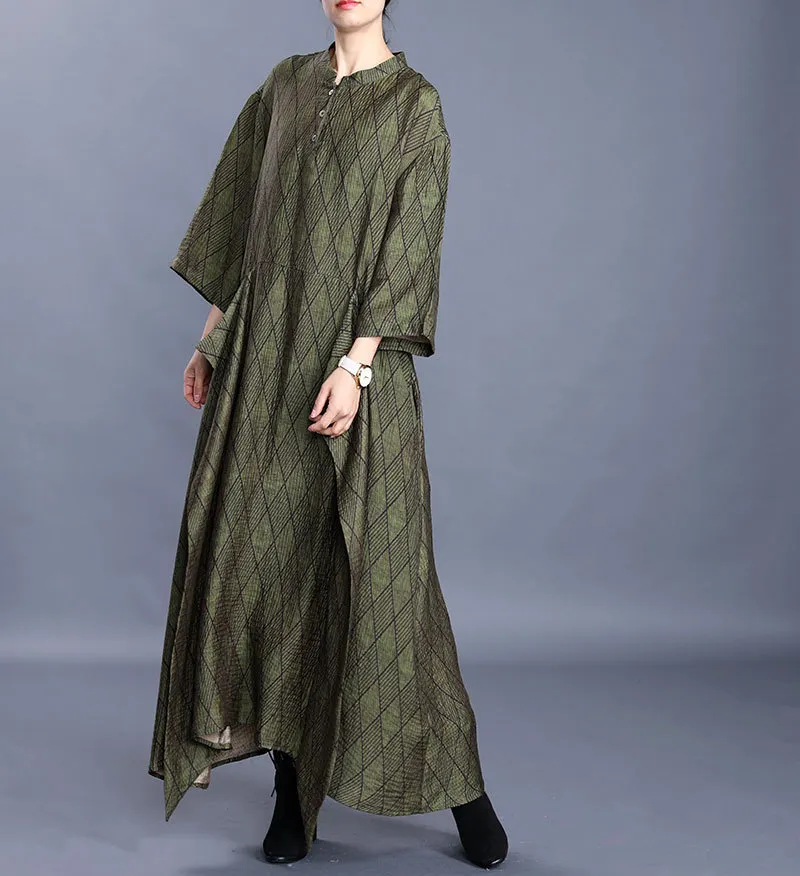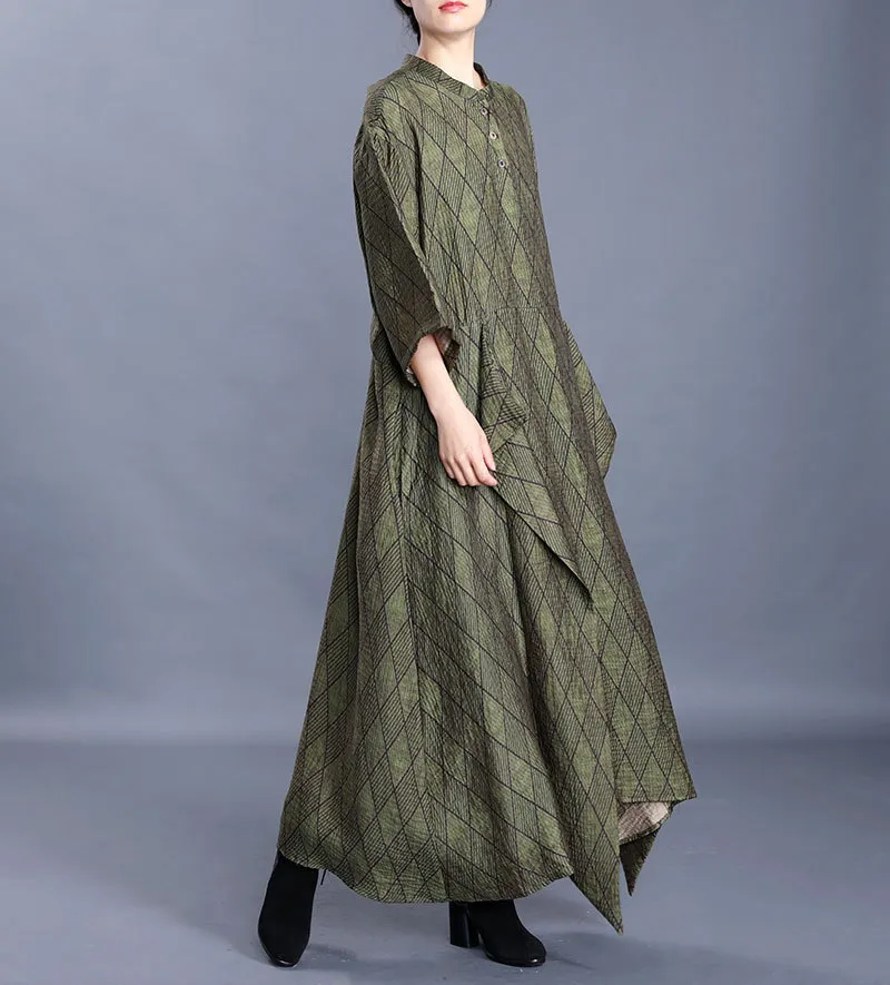 衣都精品- 2020夏季新品天絲復古格子連衣裙