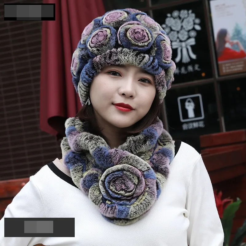 衣都精品- 2022冬季新款加厚保暖獺兔毛帽子圍巾兩件式套裝