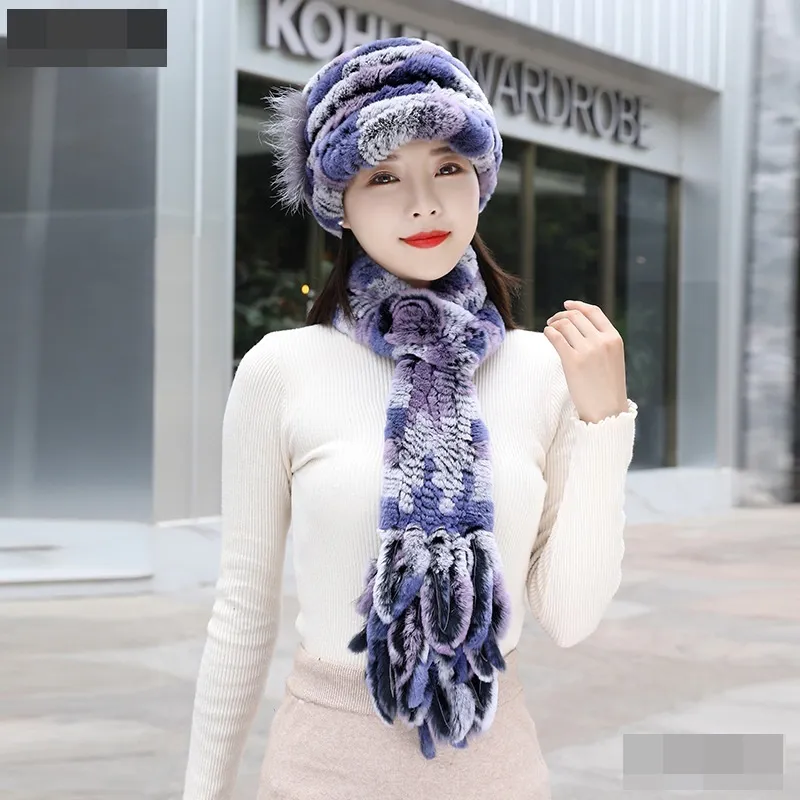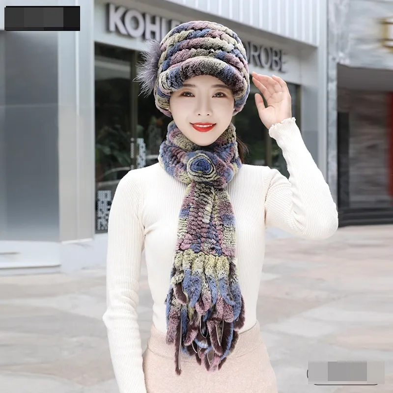 衣都精品- 2022冬季新款加厚保暖獺兔毛帽子圍巾兩件式套裝