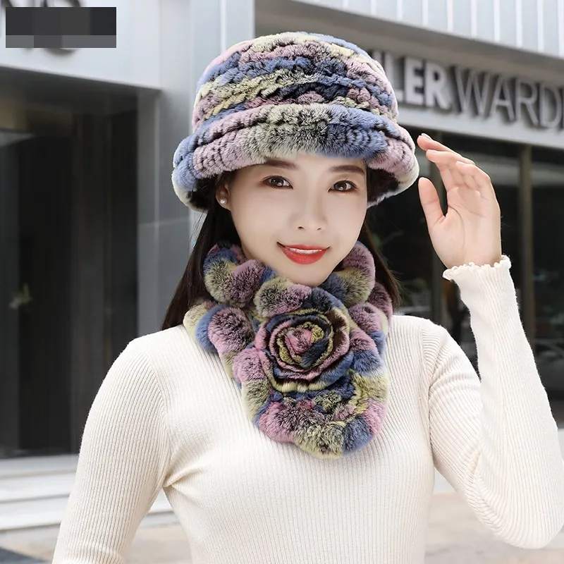 衣都精品- 2022冬季新款加厚保暖獺兔毛帽子圍巾兩件式套裝