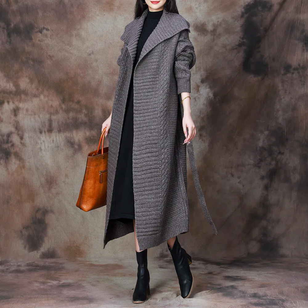 衣都精品- 2023新款繫帶羊毛開襟大翻領針織外套