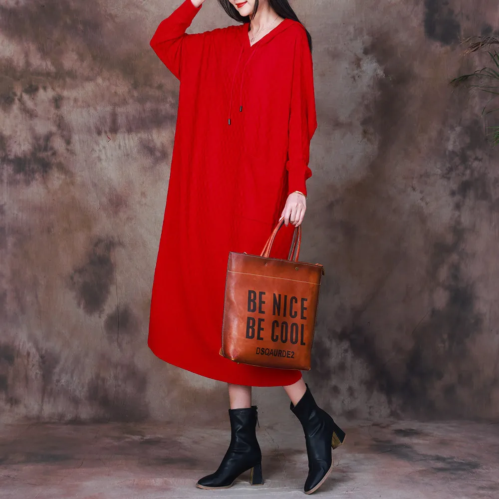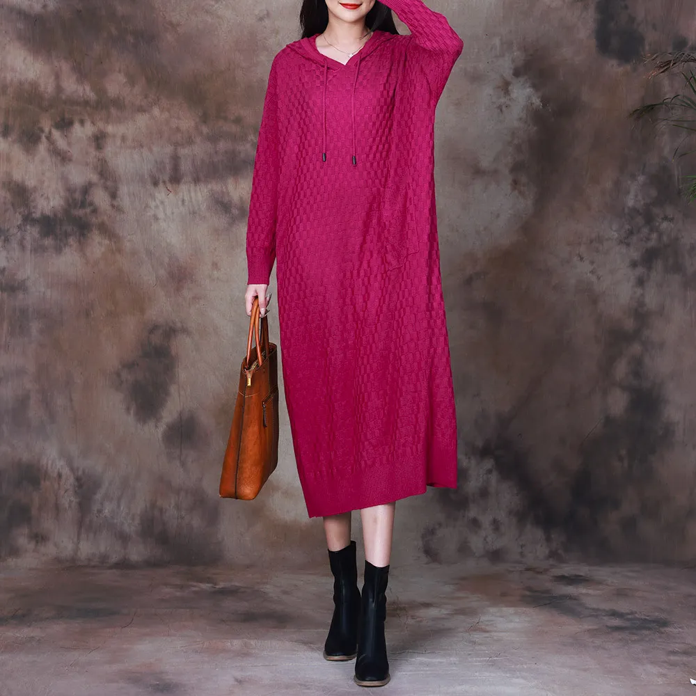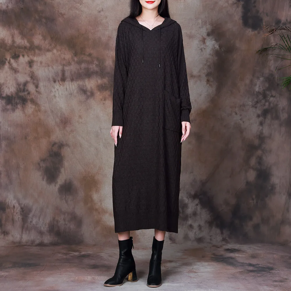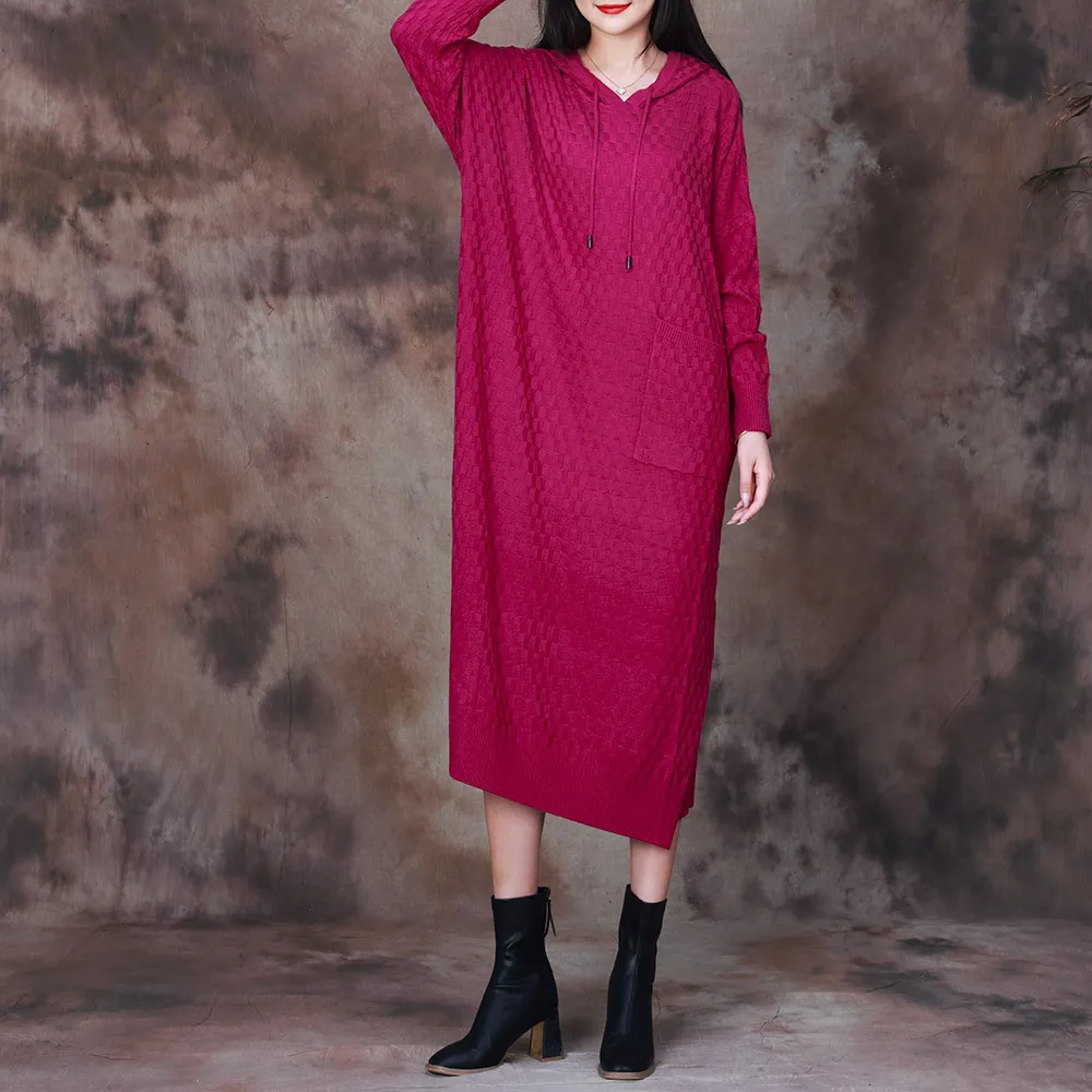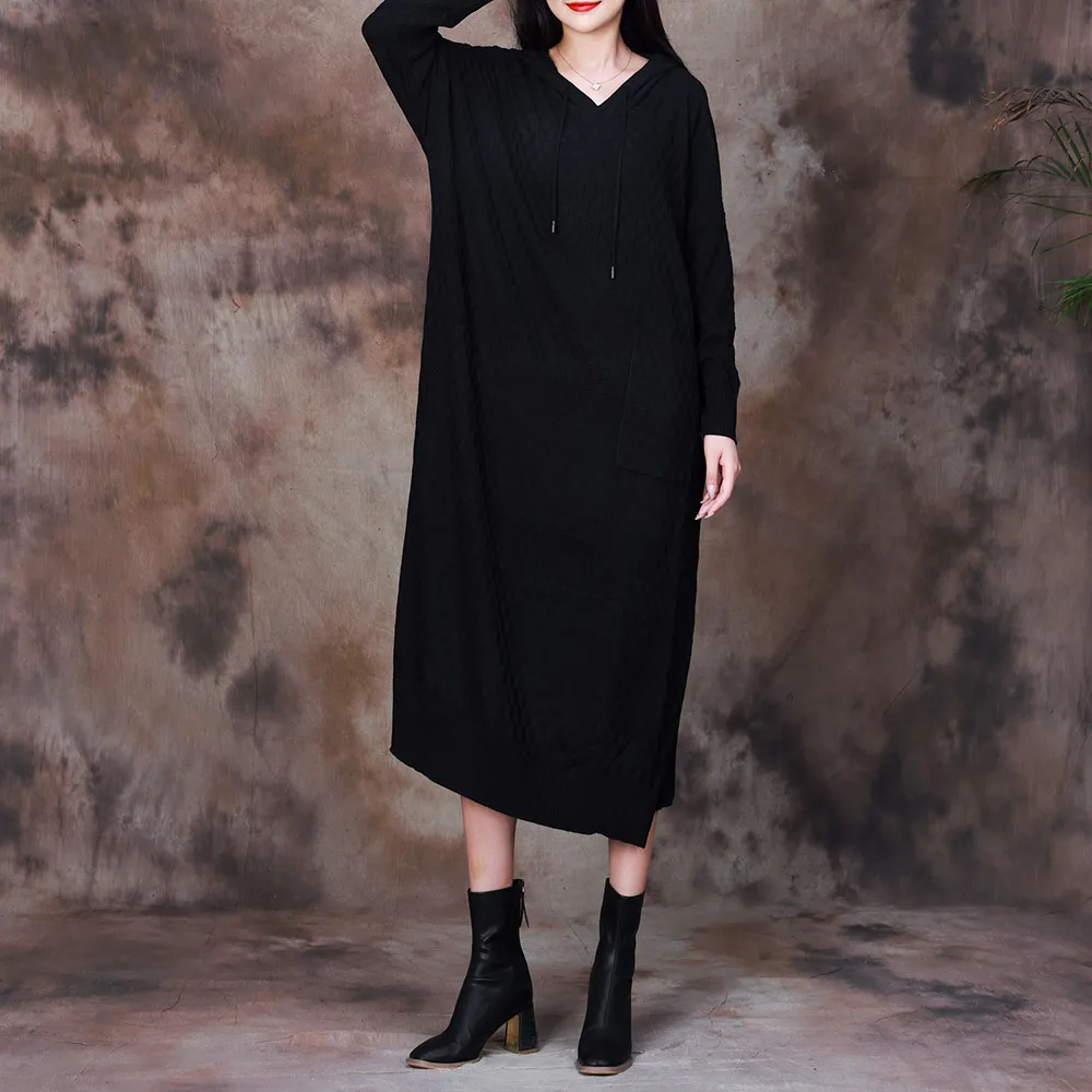 衣都精品- 2023新款連帽休閒針織寬鬆大碼連衣裙