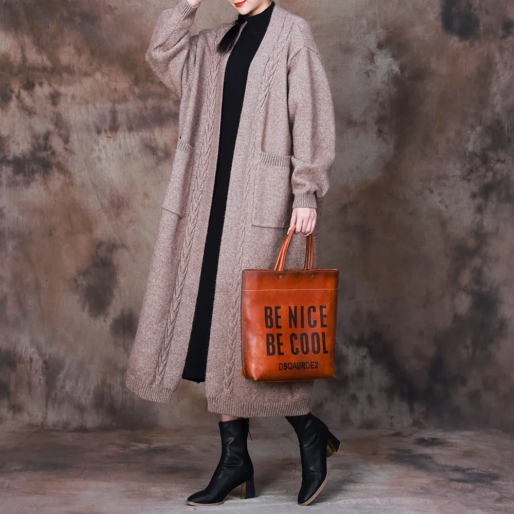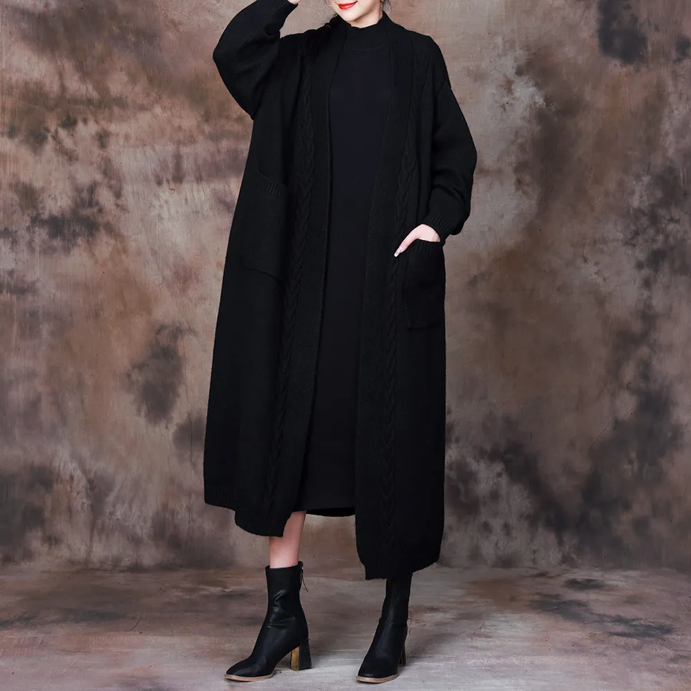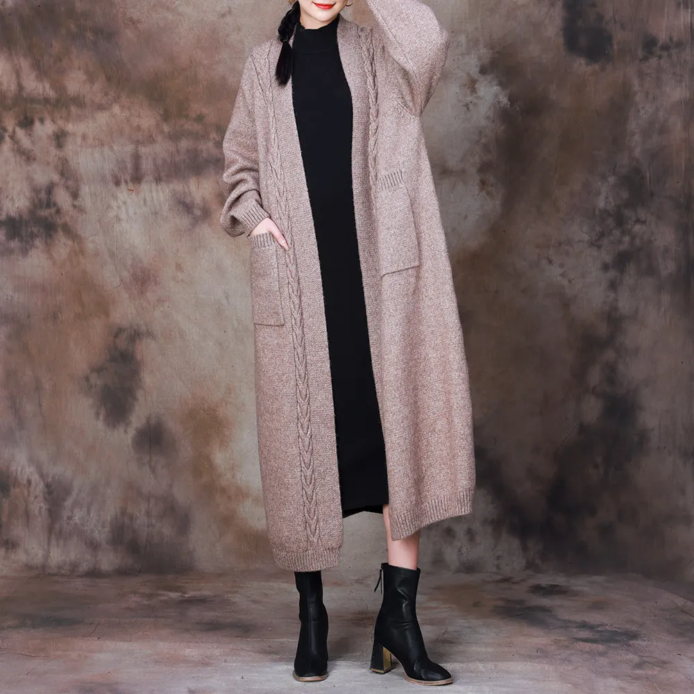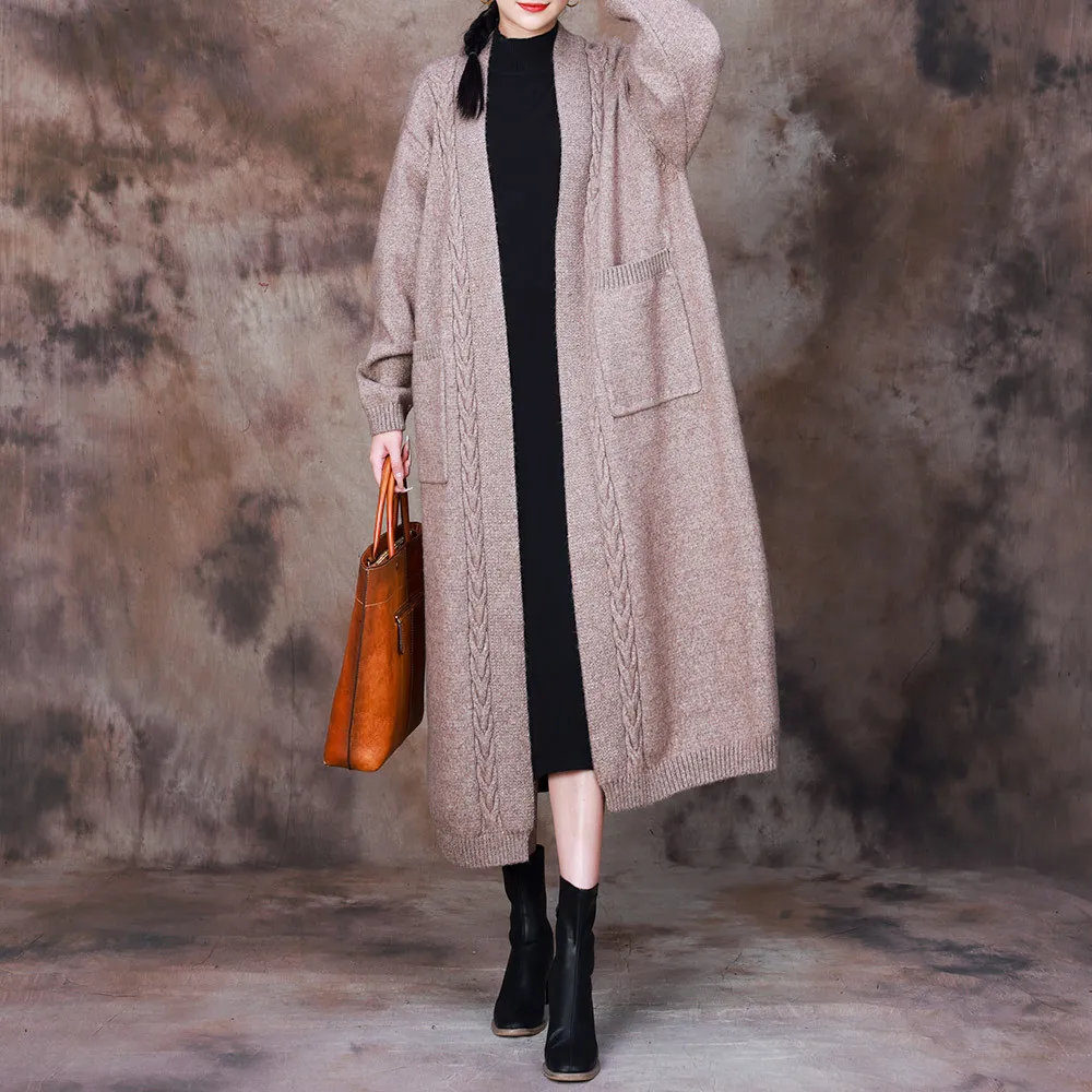 衣都精品- 2023新款慵懶風文藝編織寬鬆過膝外套