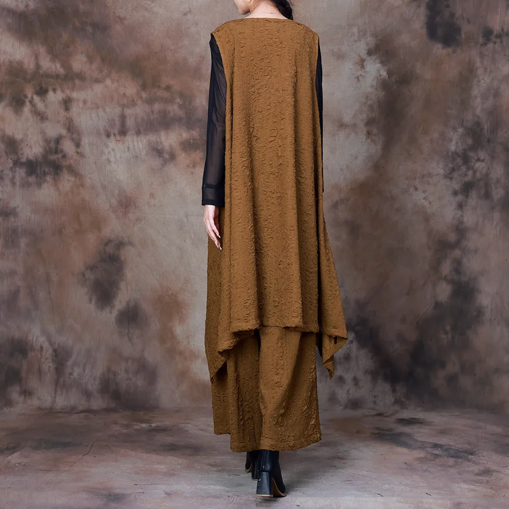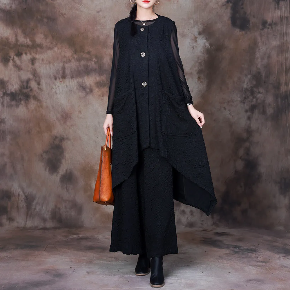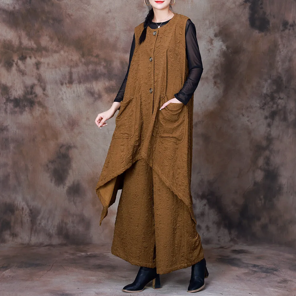 衣都精品- 2023新款復古大碼不規則馬甲外搭+收腰闊腿褲套裝