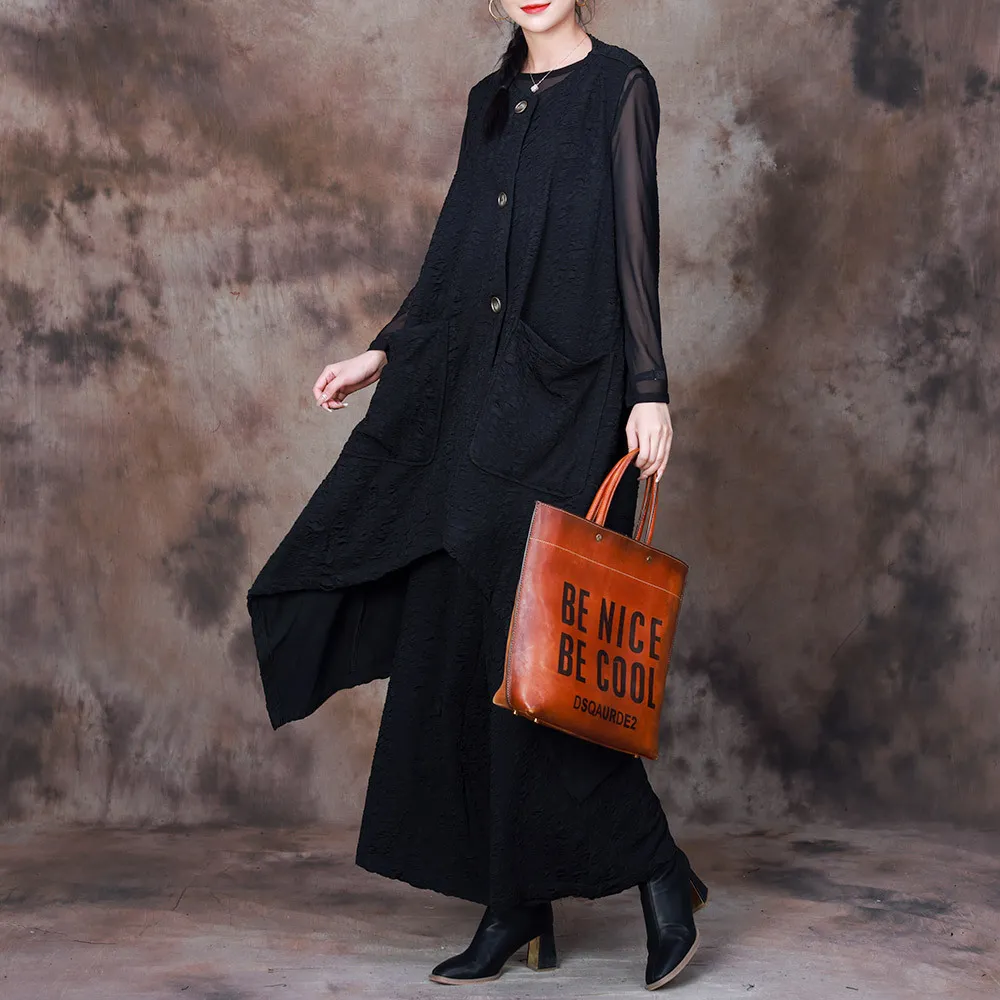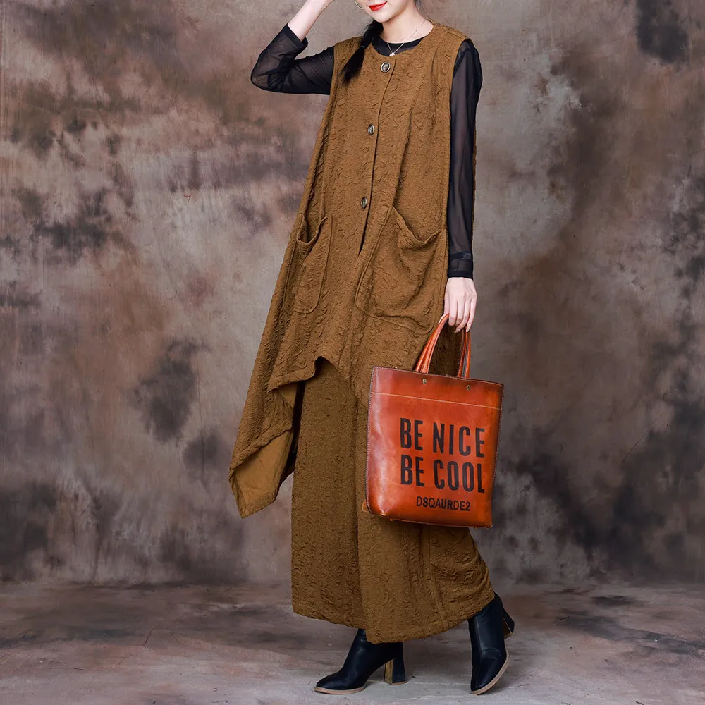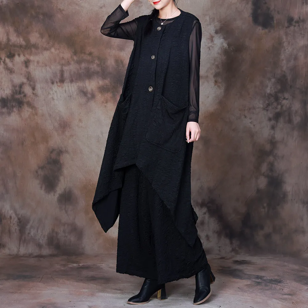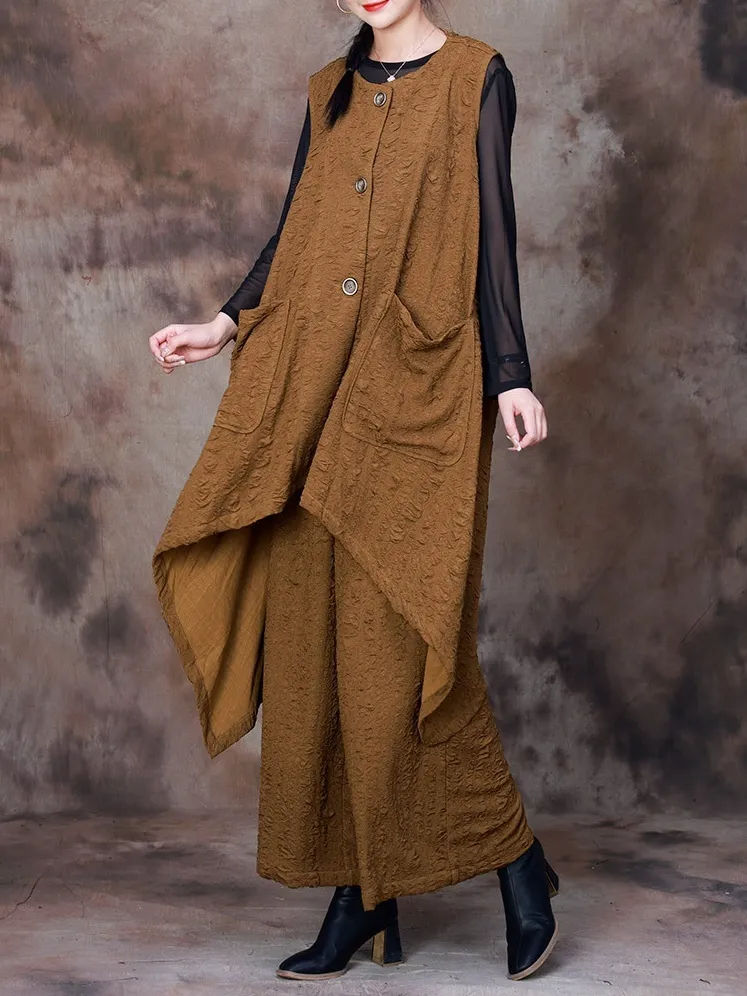 衣都精品- 2023新款復古大碼不規則馬甲外搭+收腰闊腿褲套裝