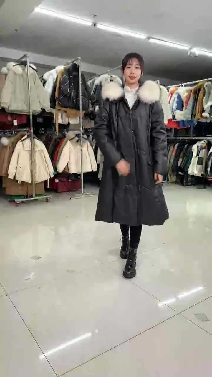 衣都精品- 2023新款狐狸毛領羽絨真皮中長款外套