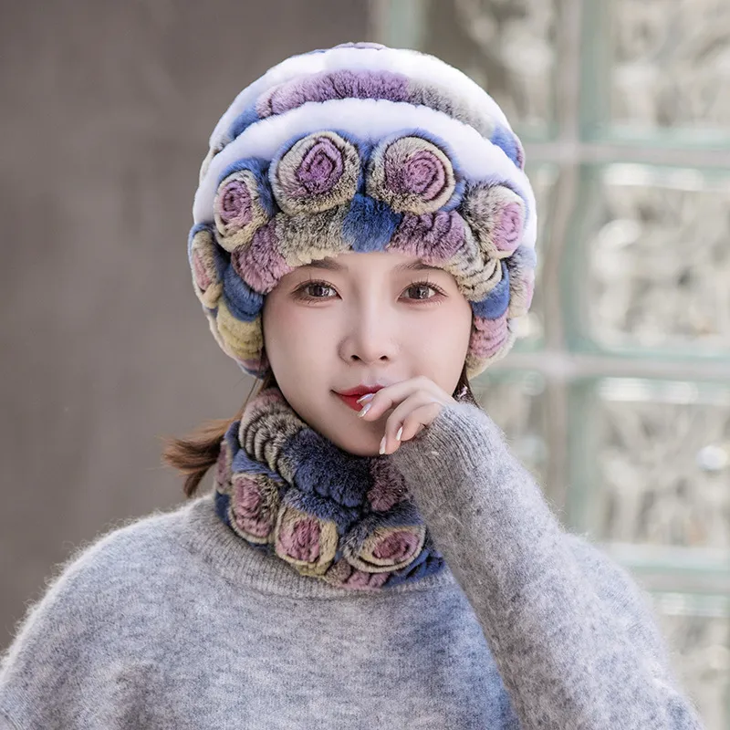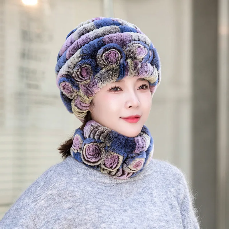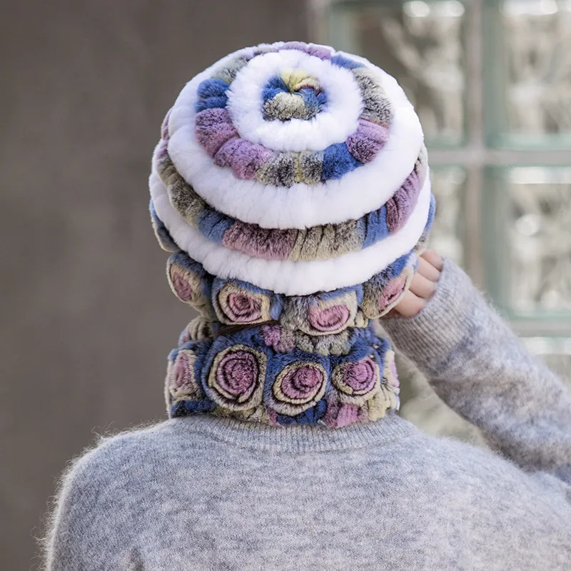 衣都精品- 2023新款韓版狐狸毛保暖皮草帽子圍巾組