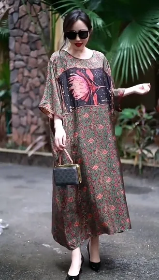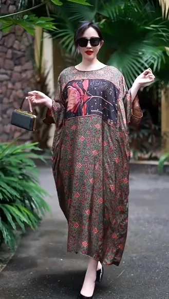 衣都精品- 2023新款復古圓領蝙蝠袖寬鬆顯瘦大碼連衣裙