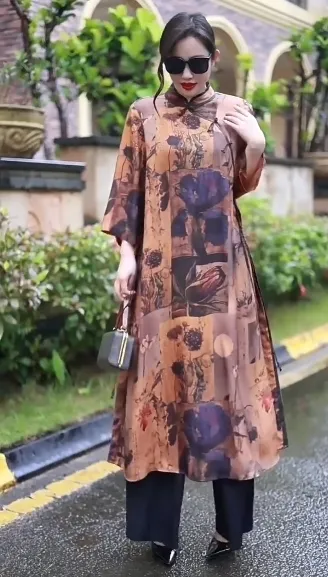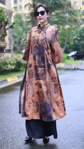 衣都精品- 2023新款復古立領寬鬆顯瘦大碼氣質連衣裙