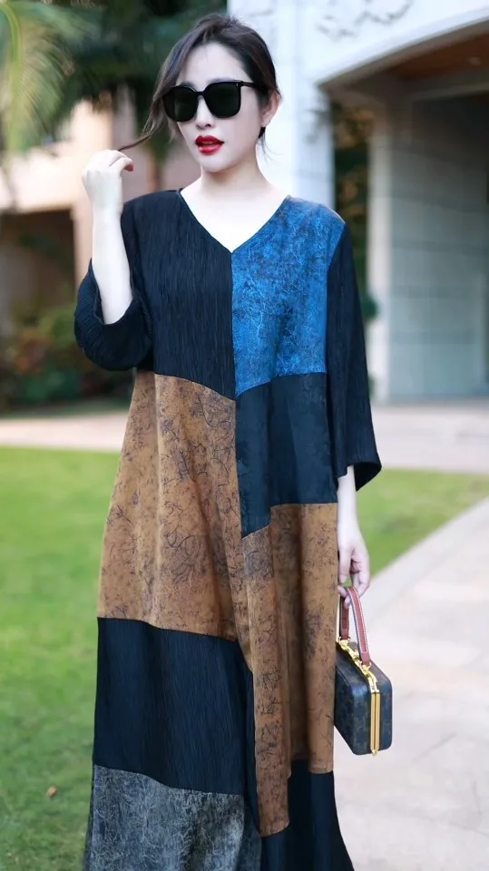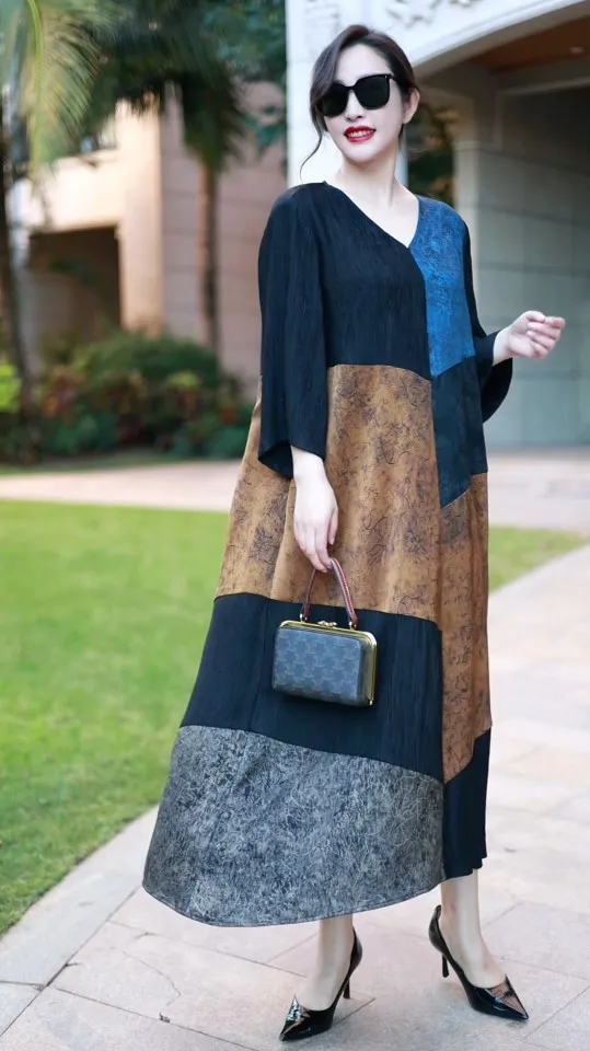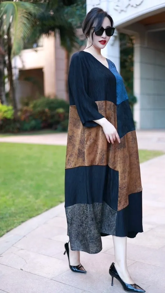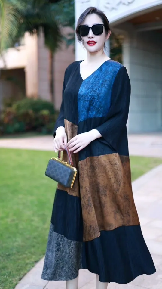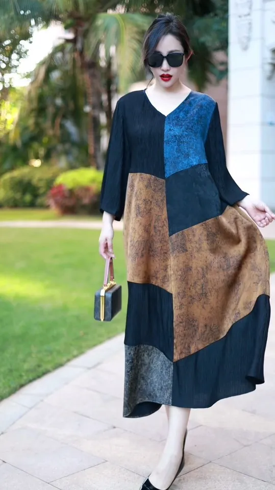 衣都精品- 2023新款復古V領寬鬆顯瘦大碼氣質連衣裙