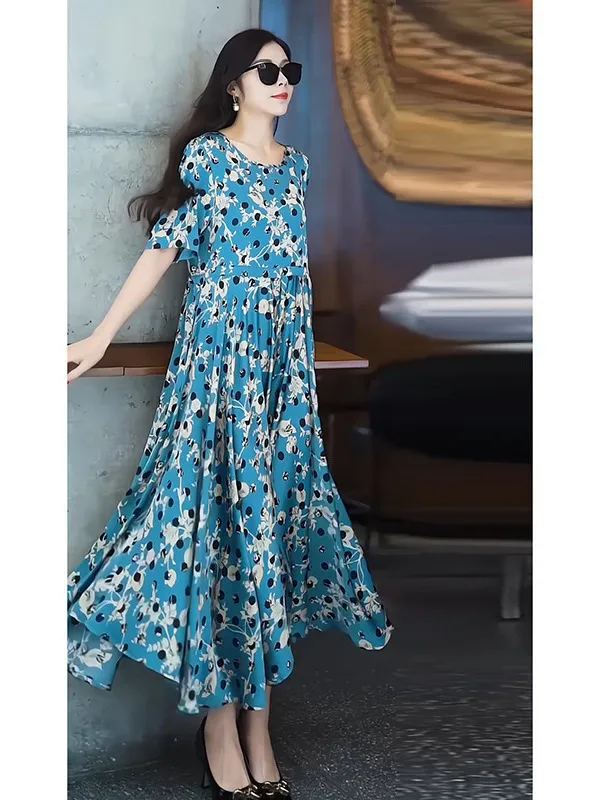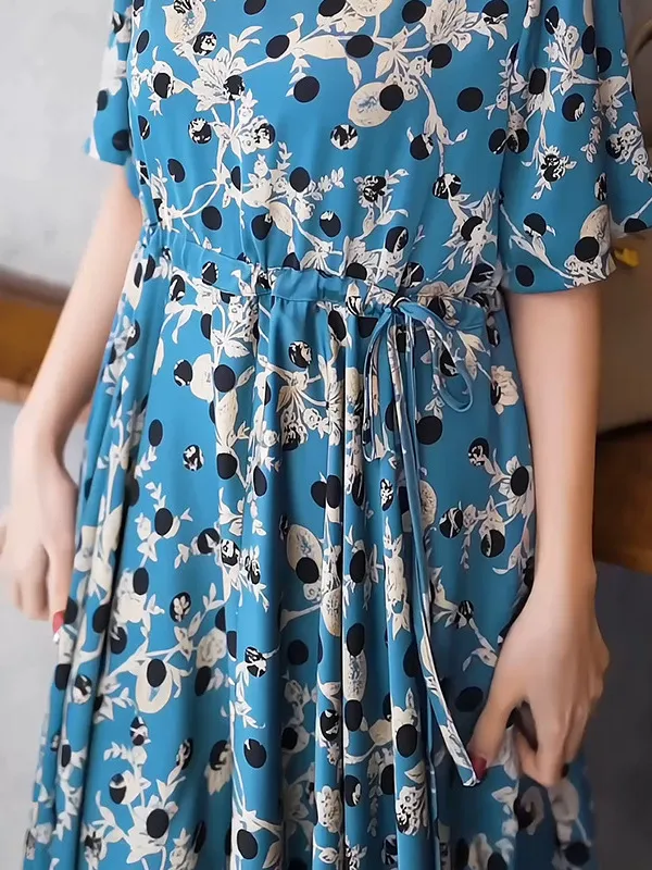 衣都精品- 新款氣質印花休閒寬鬆大擺收腰連衣裙