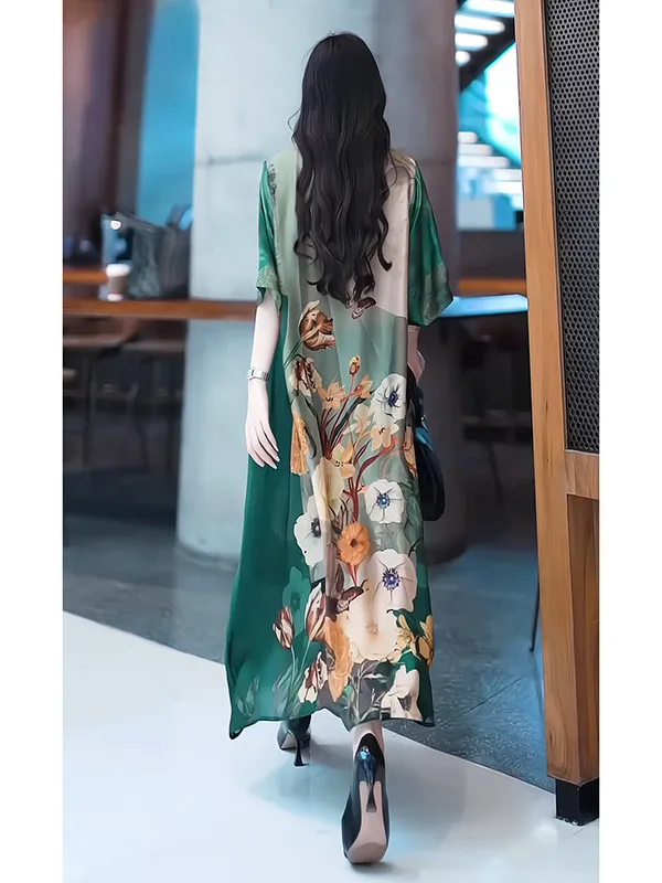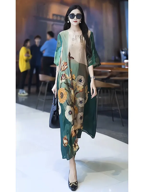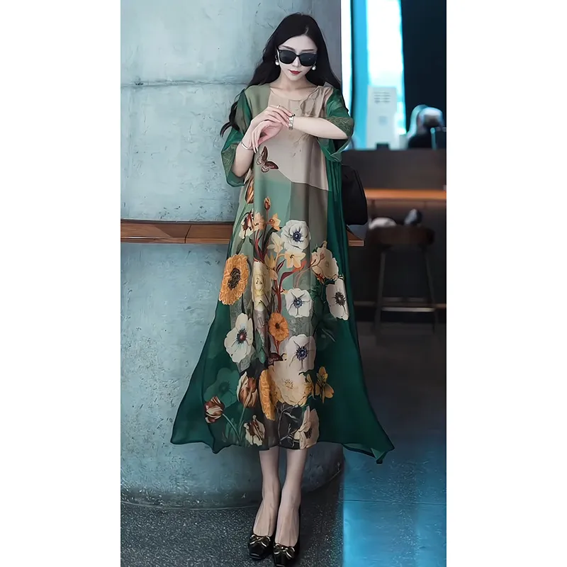 衣都精品- 新款文藝印花大碼寬鬆減齡連衣裙