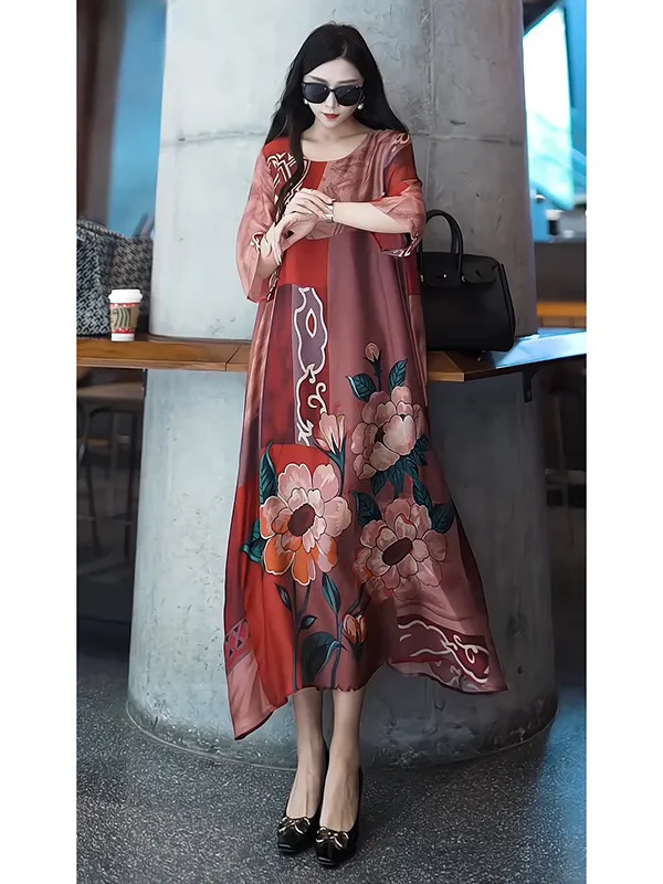 衣都精品- 新款文藝印花大碼寬鬆減齡連衣裙