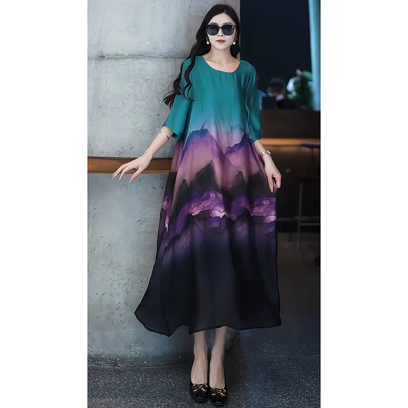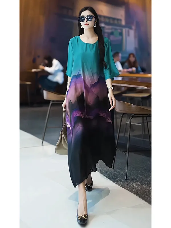 衣都精品- 新款寬鬆大碼高級感印花圓領連衣裙
