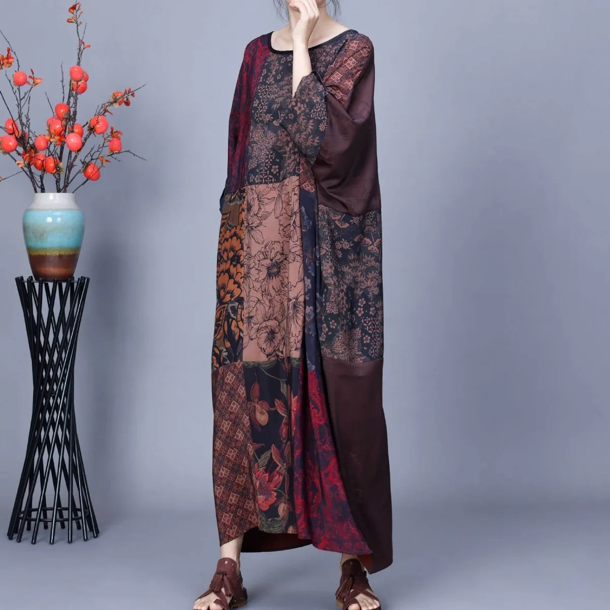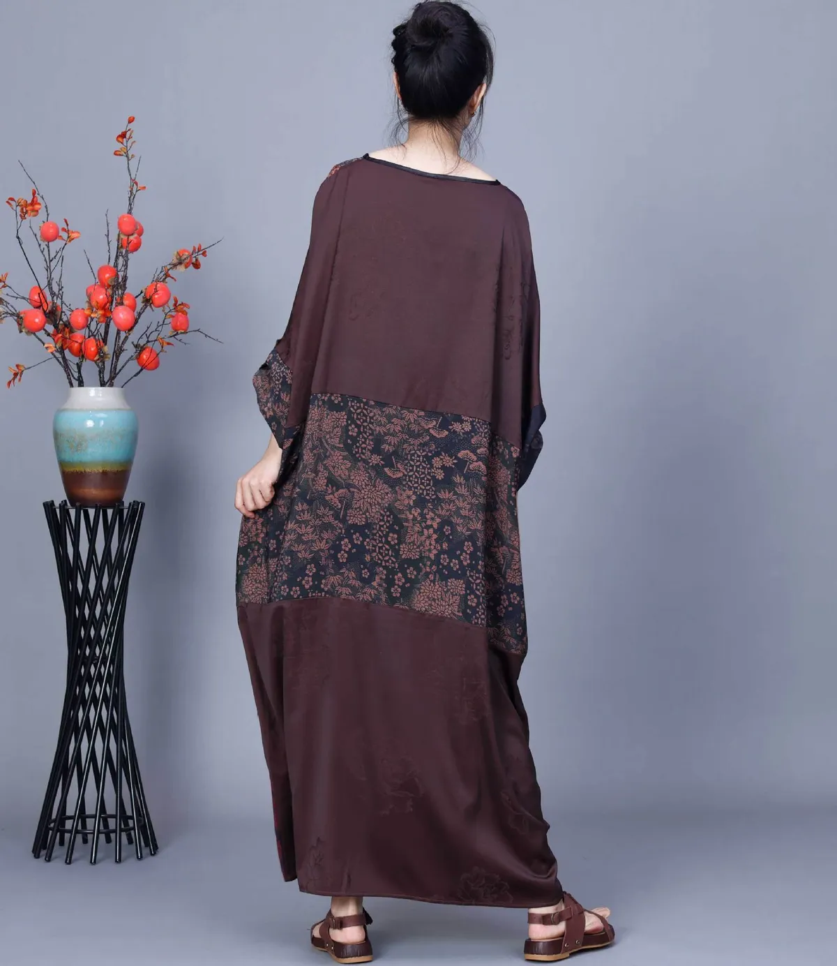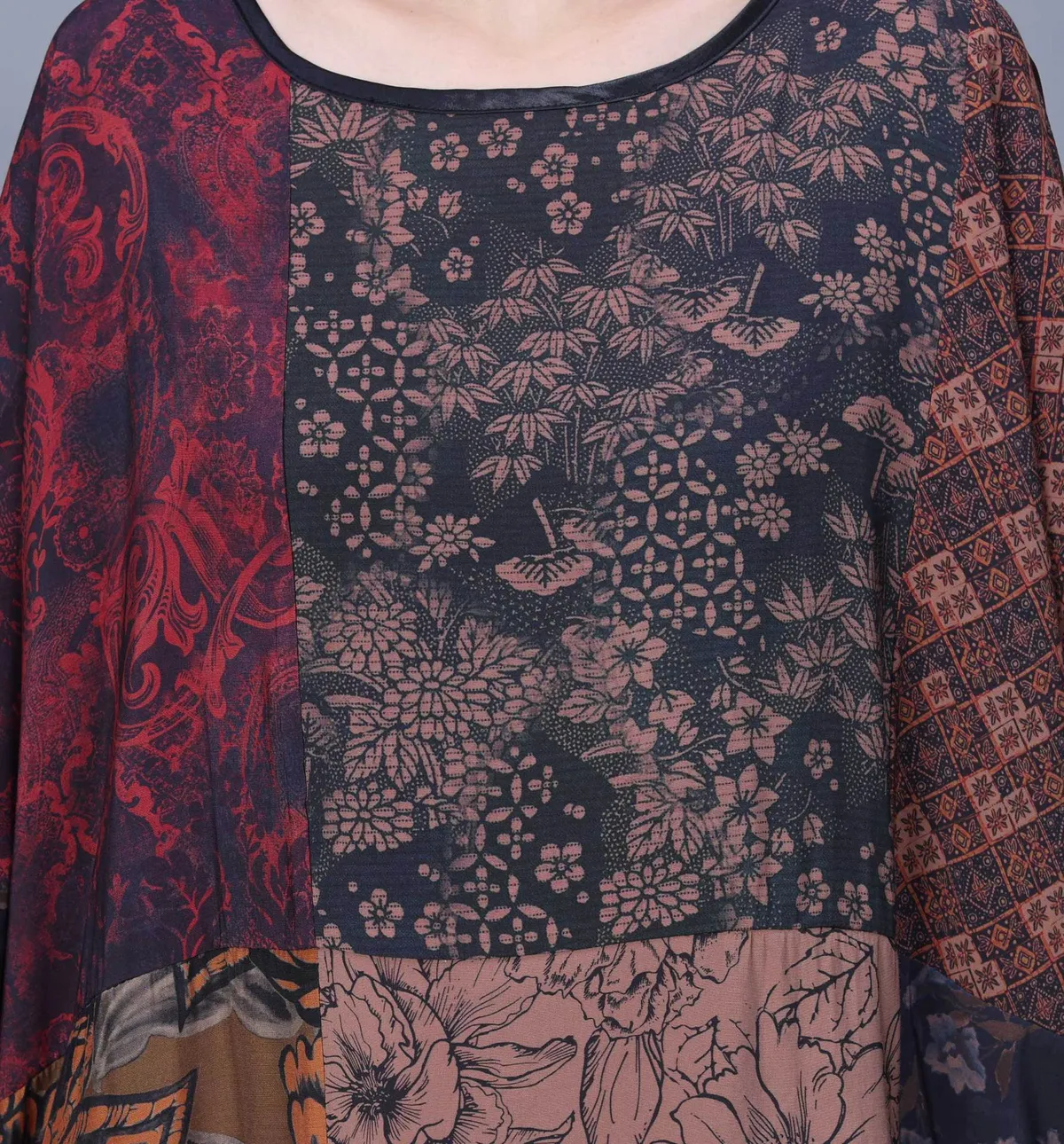 衣都精品- 新款大碼寬鬆拼接不規則蝙蝠袖印花連衣裙