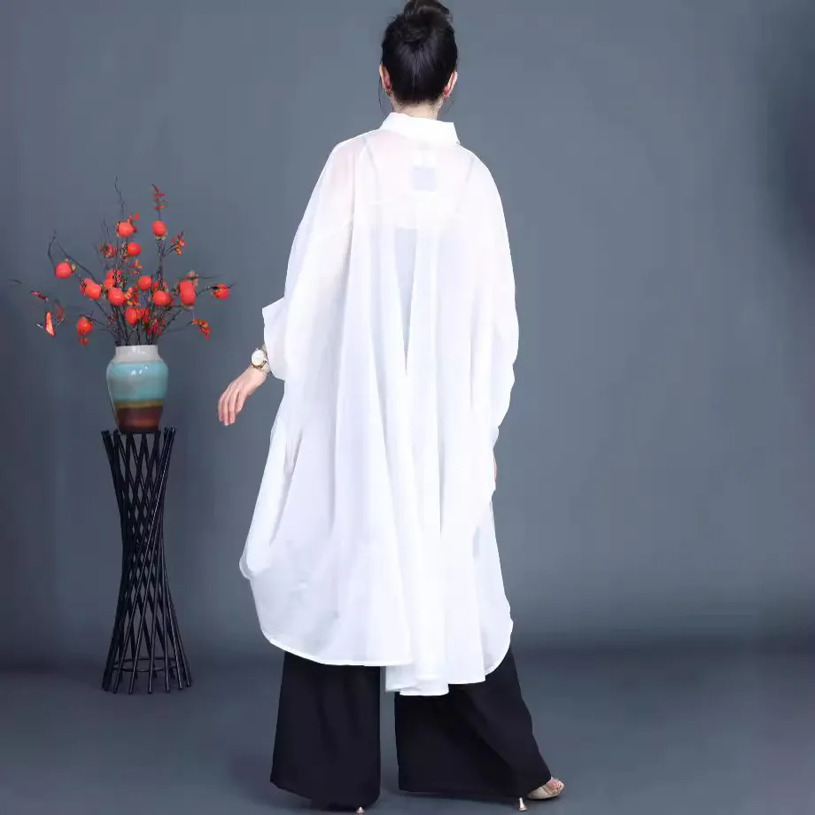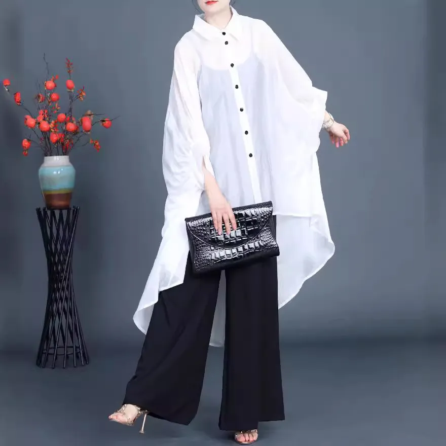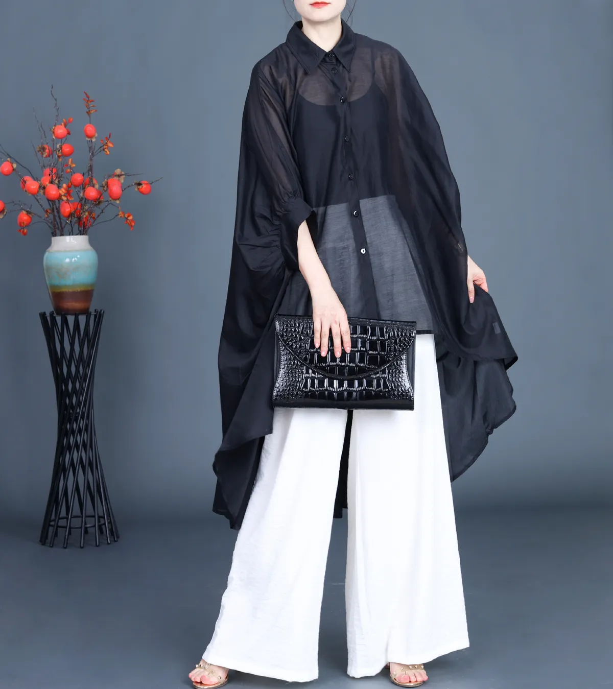 衣都精品- 新款時尚不規則透視寬鬆蝙蝠袖上衣