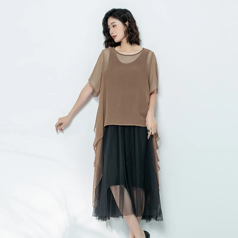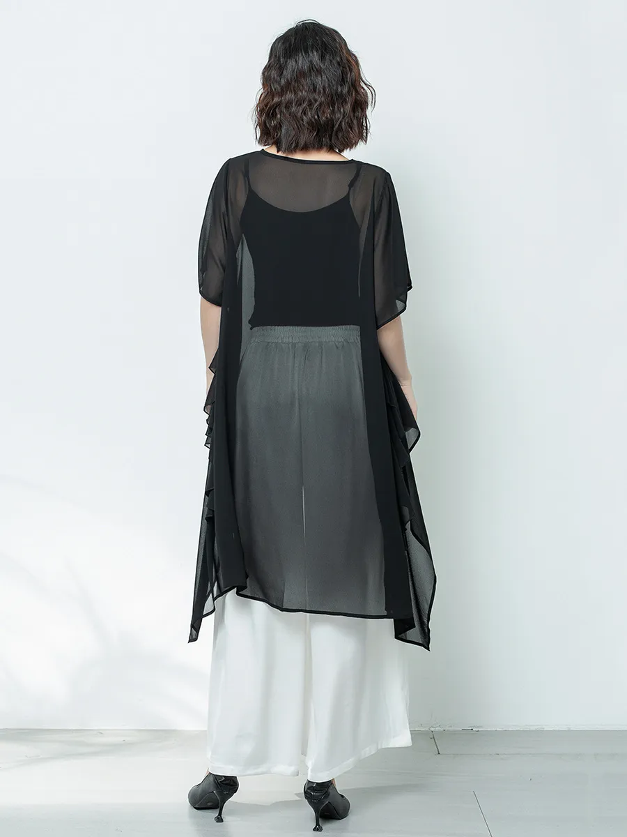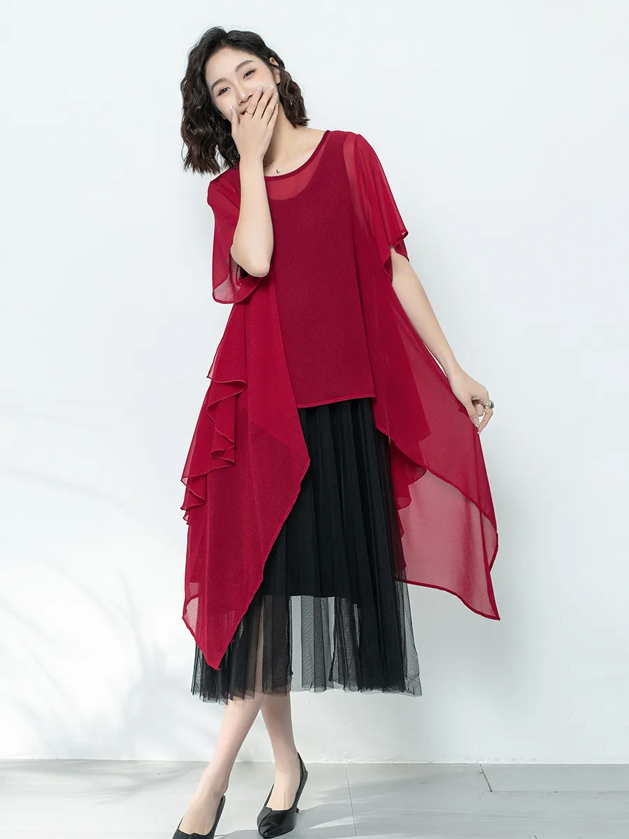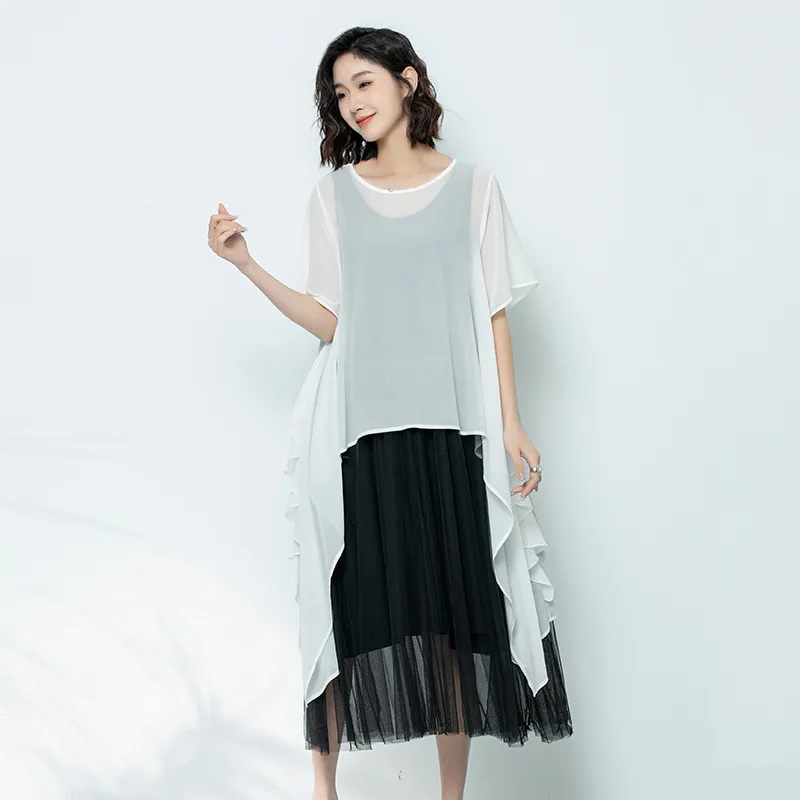 衣都精品- 新款時尚不規則透視寬鬆蝙蝠袖上衣