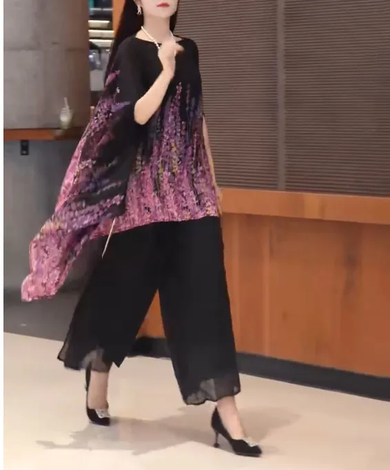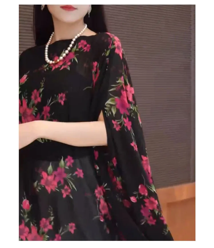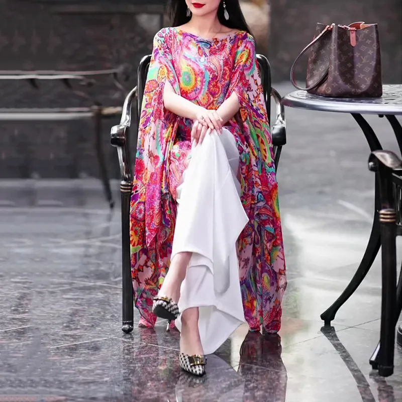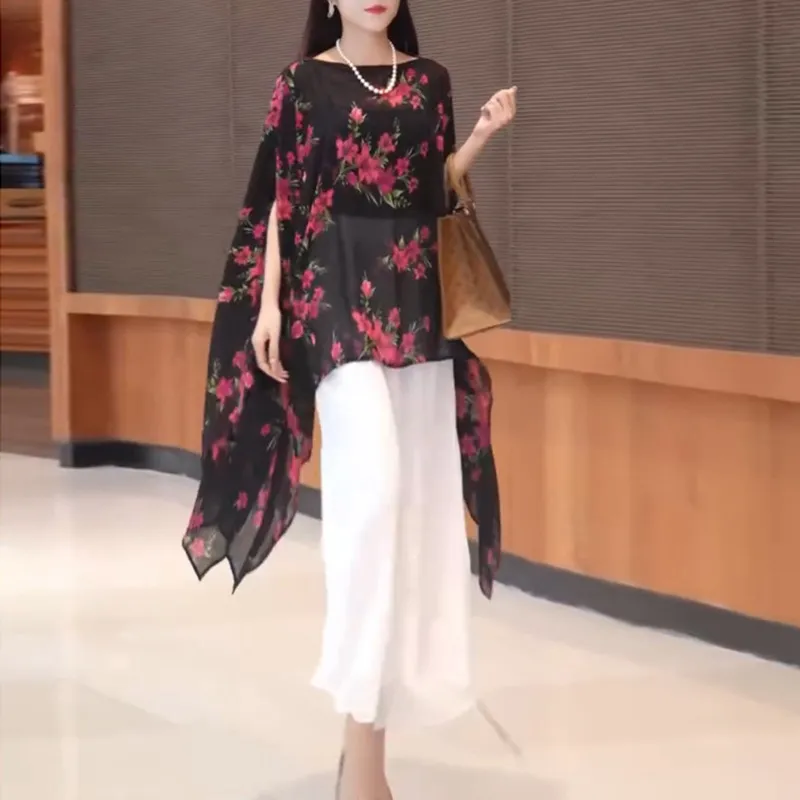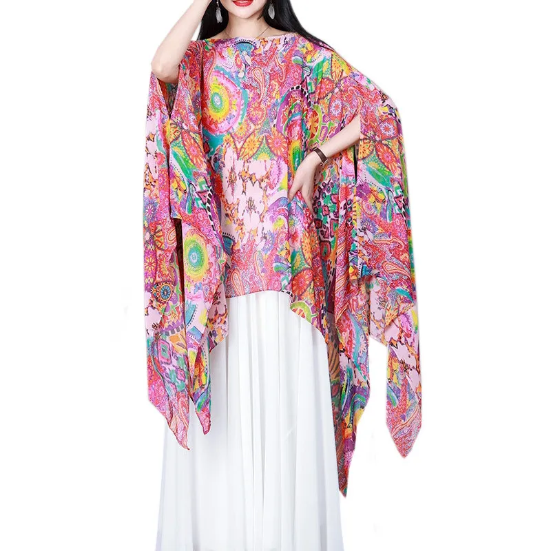 衣都精品- 新款寬鬆大碼蝙蝠袖印花不規則披肩