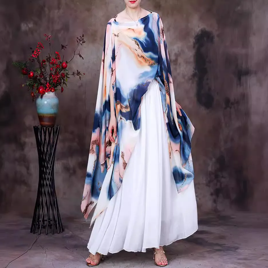 衣都精品- 新款時尚氣質雪紡渲染不規則披肩