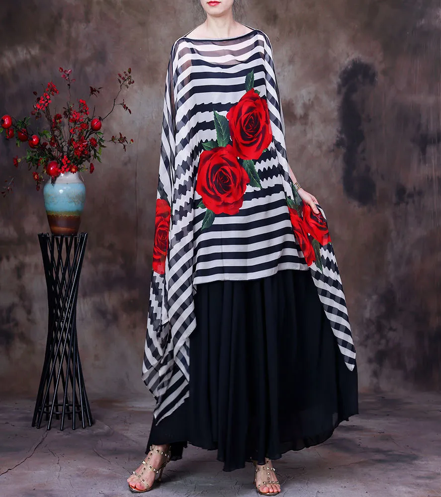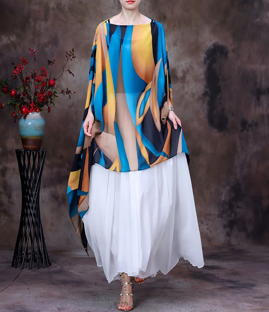 衣都精品- 新款寬鬆大碼真絲印花遮肉顯瘦連衣裙