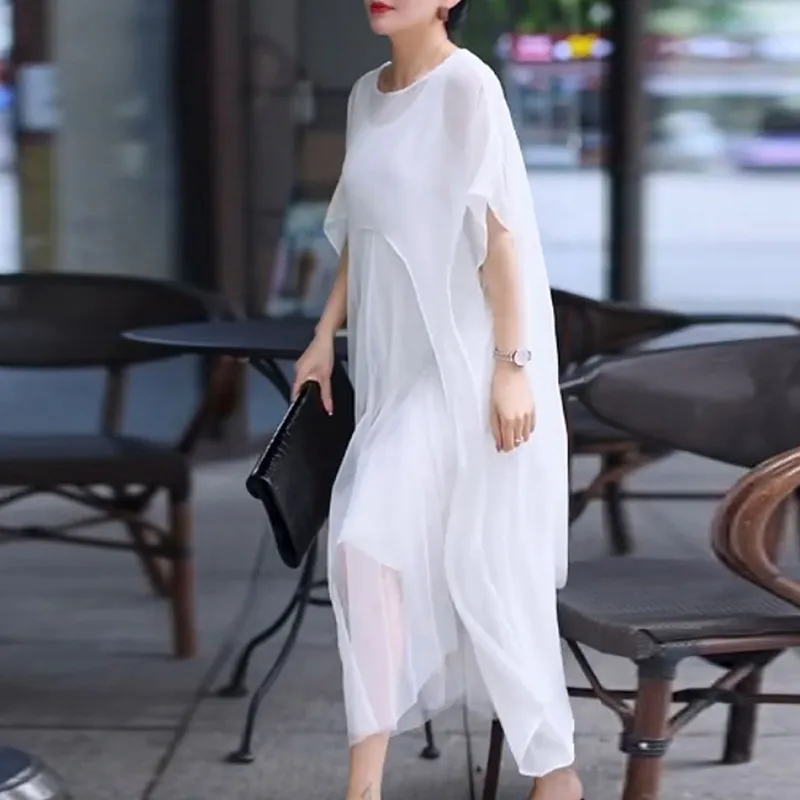 衣都精品- 新款高級輕奢大碼文藝氣質寬鬆連衣裙